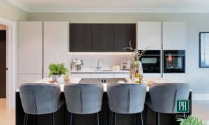 A sleek handle-less kitchen with striking horizontal and vertical line work is the embodiment of contemporary style. Quartz worktops, large format floor tiles and LED feature under cupboard lighting maintain the theme. A comprehensive range of appliances also ensures your kitchen is as practical as it is beautiful.