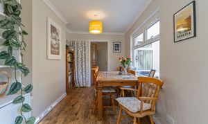You enter the property through the hallway, where the staircase rises ahead to the first floor and access is provided to the main living area. The ground floor features a spacious open plan lounge and dining room, characterised by tall ceilings and a bay-fronted window that allows plenty of natural light to fill the space. This versatile room offers ample space for both seating and dining, creating a comfortable environment for everyday living and entertaining. To the rear of the property is the kitchen and breakfast room, which features a good-sized fitted kitchen with ample storage and workspace, along with space for dining.