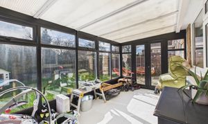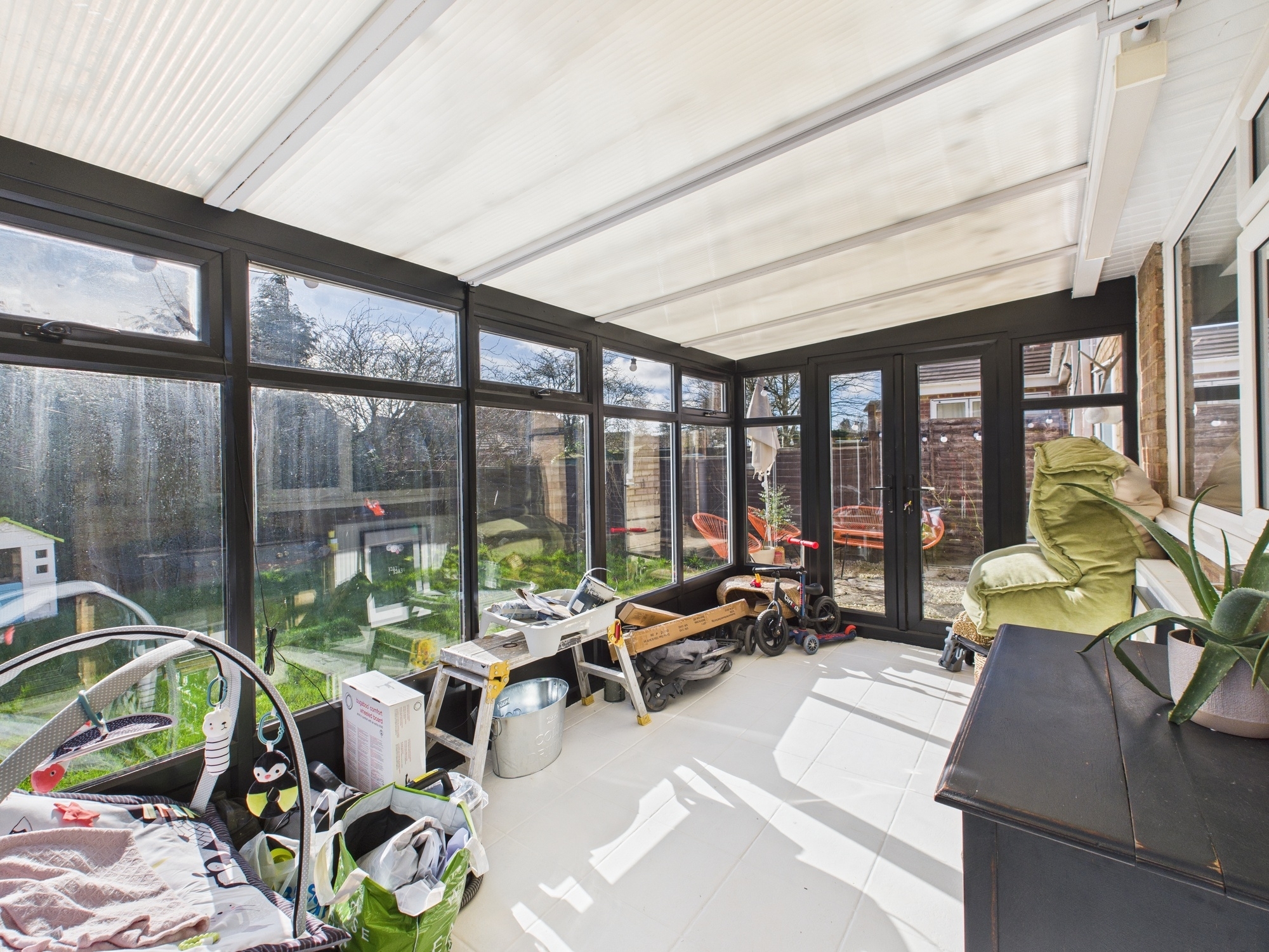 Fully enclosed, the rear garden offers patios either side of the conservatory and a lawn with mature planting to the rear. Outside tap.