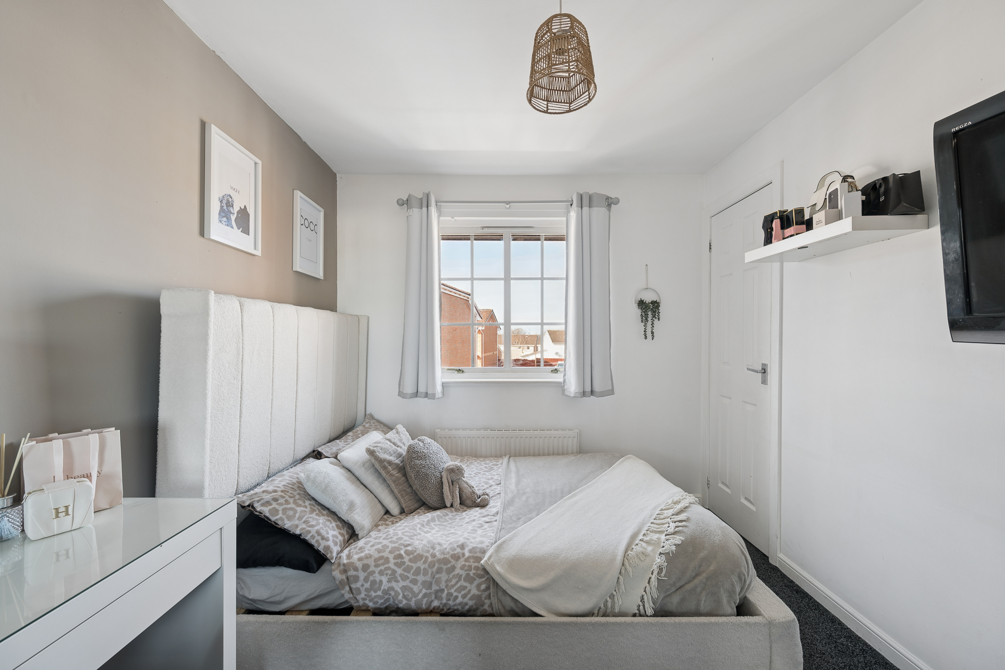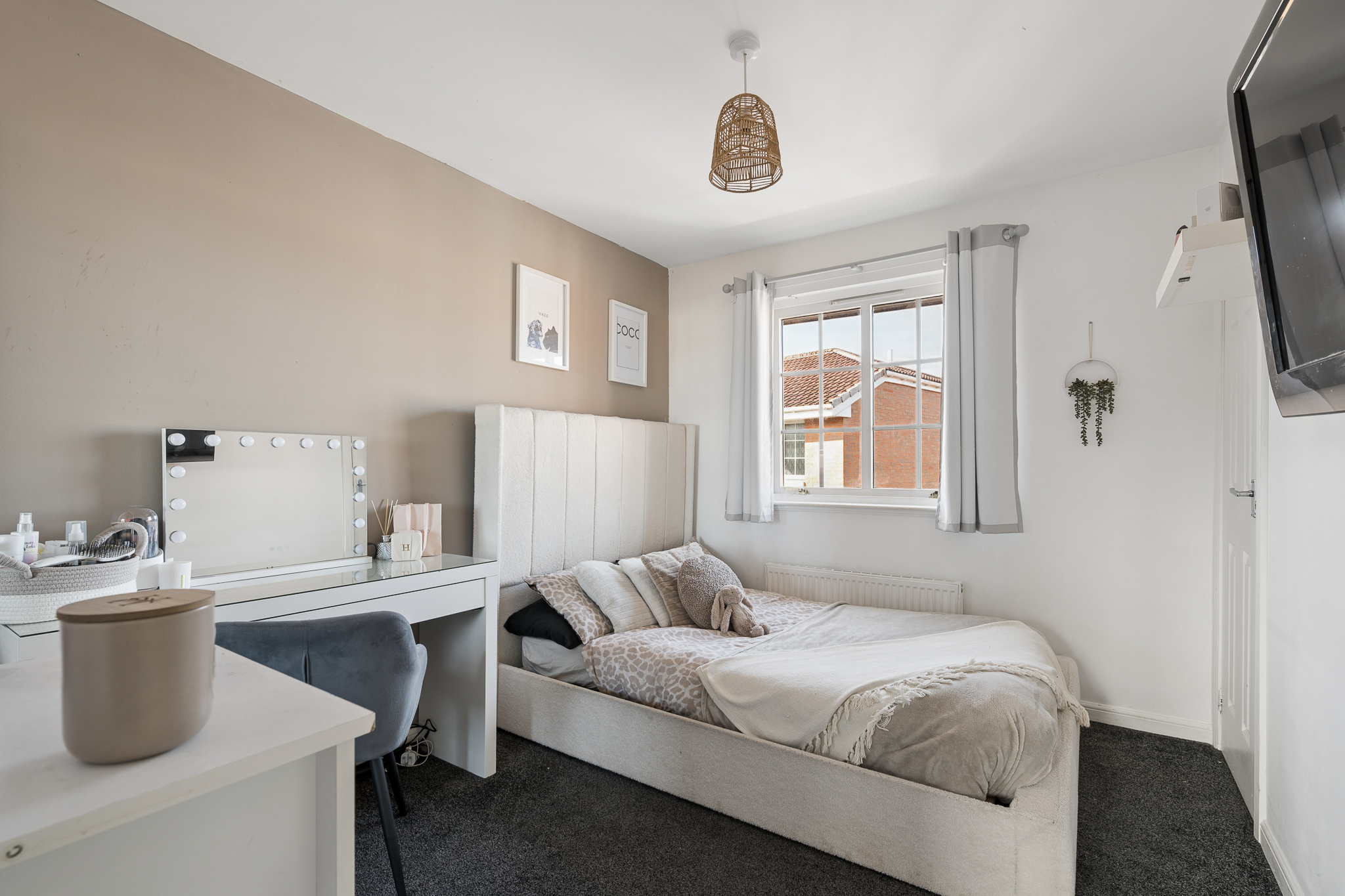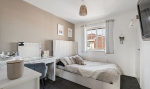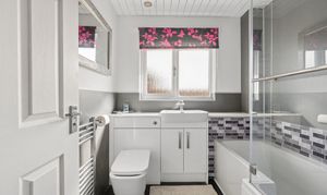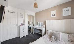 The additional bedrooms are bright and versatile, suitable for family living, guests or home working, all finished in neutral décor with a mix of carpet and wood effect flooring. The family bathroom is finished to a high standard, featuring a modern suite with vanity storage, stylish tiling and a shower over bath.