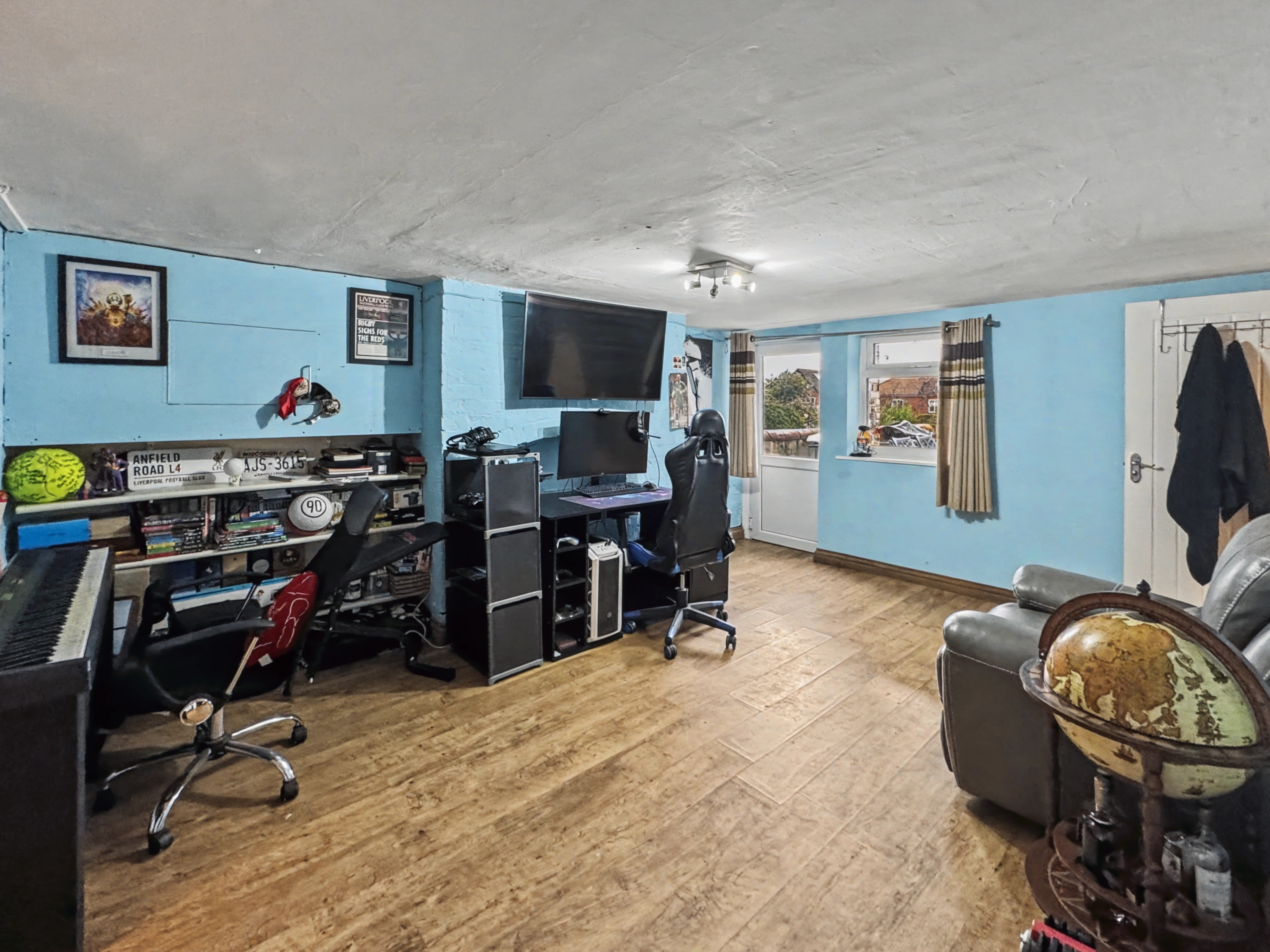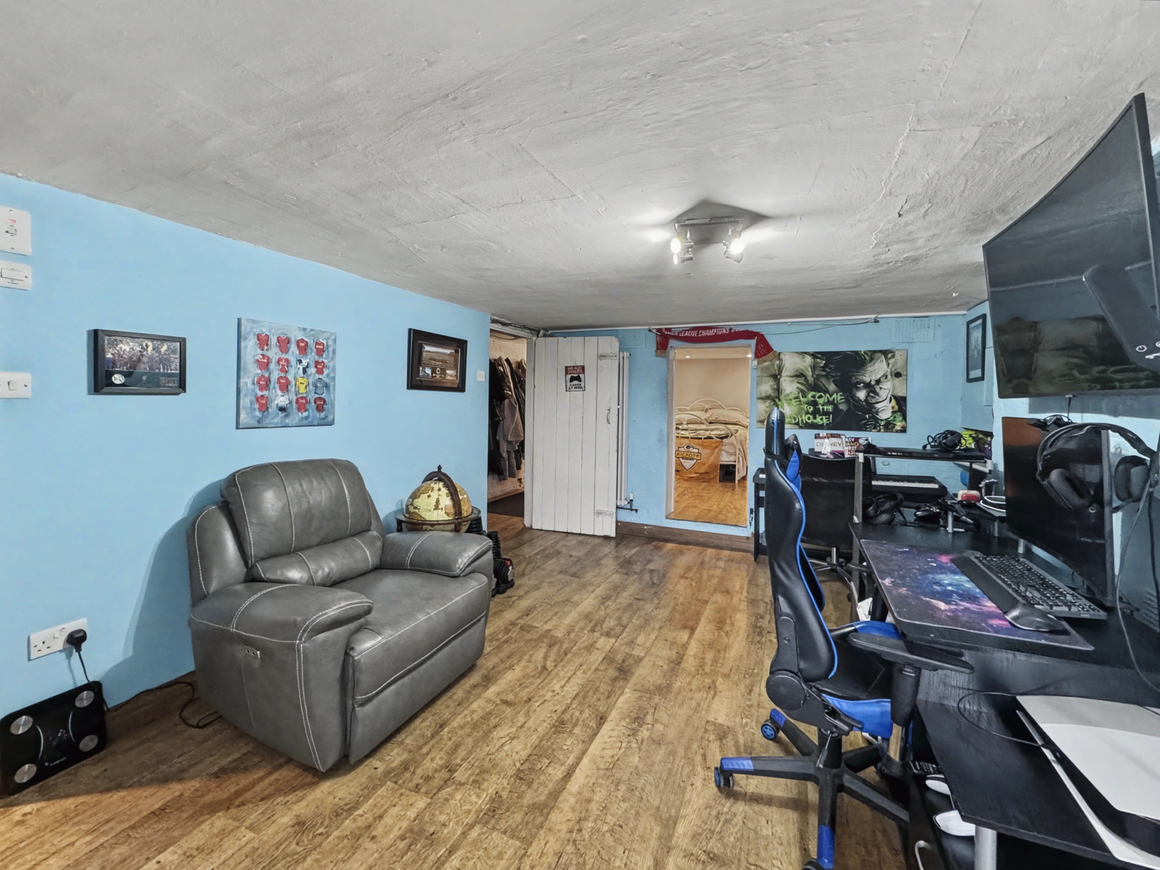 Off the hallway, you have access to the lower ground floor, which is currently set up as a versatile self-contained annexe for independent living, comprising a lounge with double doors opening onto a patio area, kitchen, bedroom and shower room. There is also access to a utility room.