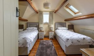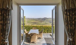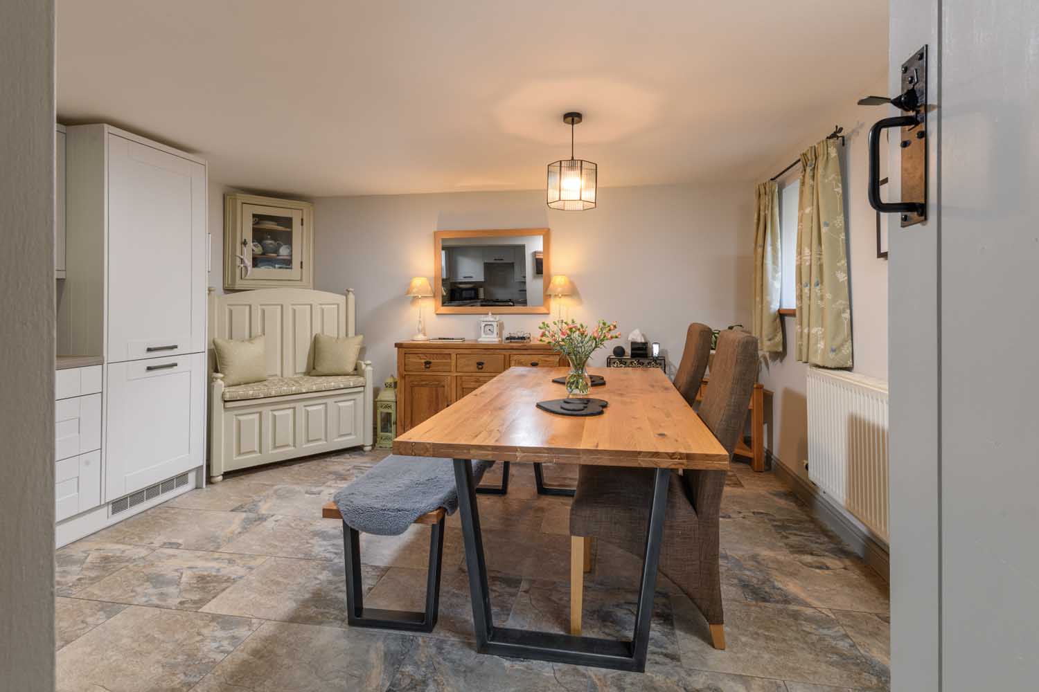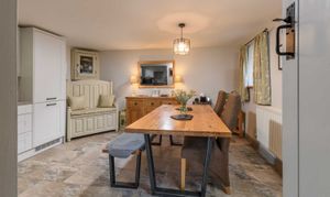 The Barn has a more traditional feel, with a welcoming kitchen-diner, a separate sitting room with French doors opening onto the garden, and two generous double bedrooms upstairs. The interiors are calm and considered, with wooden beams, pine flooring, and countryside views from nearly every window. Like The Shippon, it includes a private hot tub and has proven consistently popular with guests. This property also features an adjoining garage.