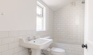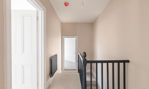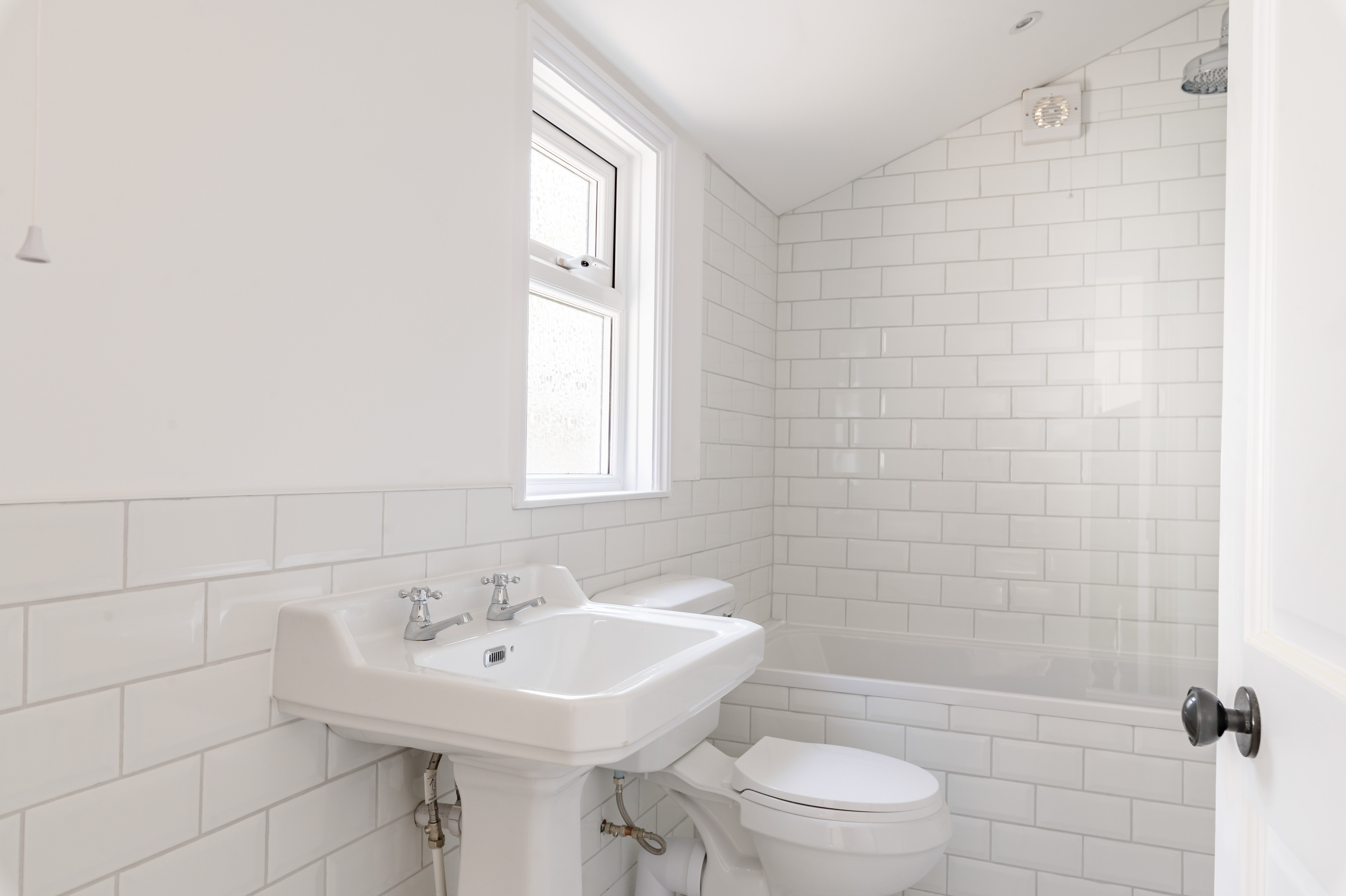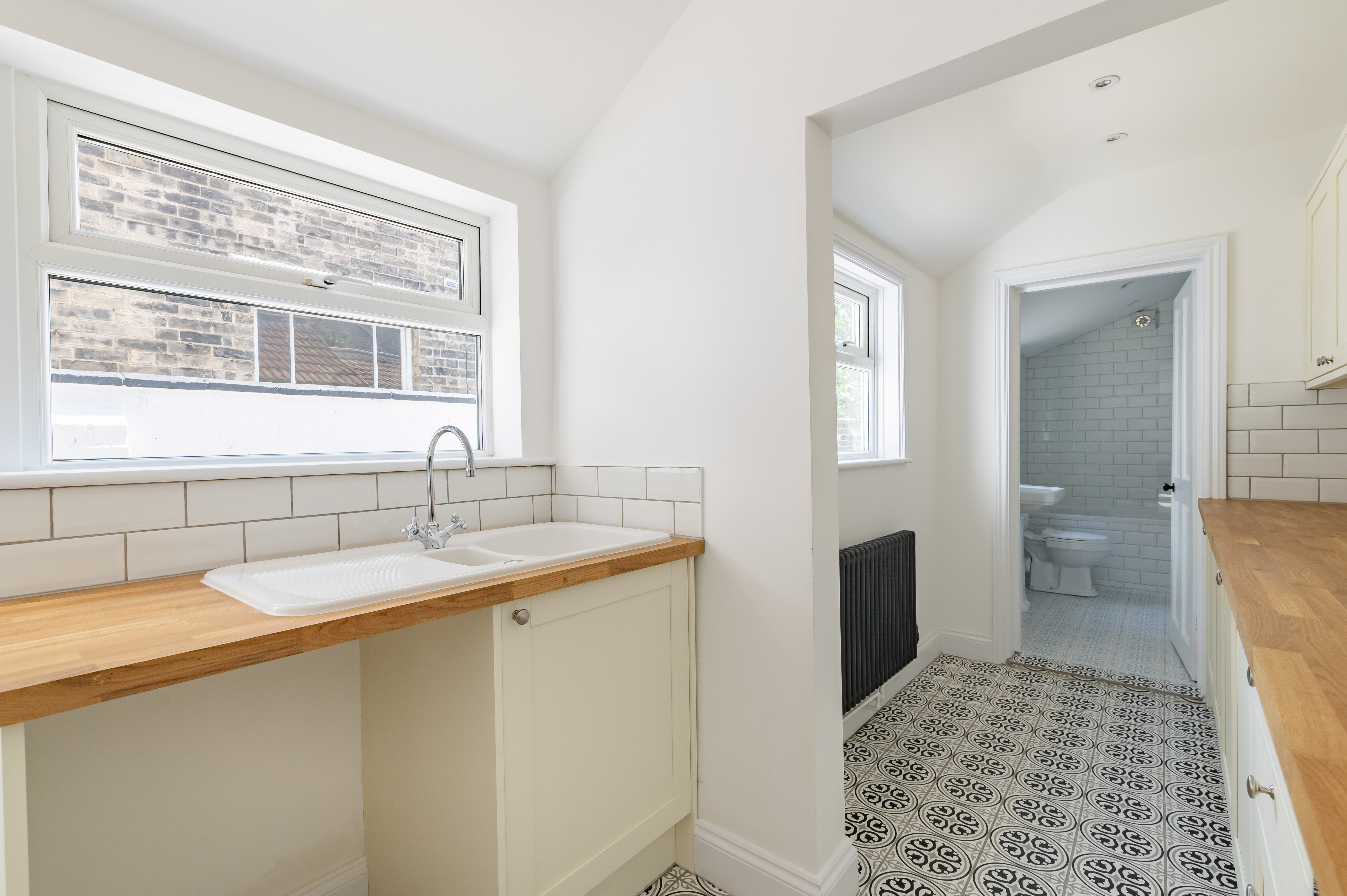 Completing the ground floor is a contemporary bathroom, fitted with a stylish three-piece suite and finished with tiled walls, bringing a modern touch to the home’s classic structure.