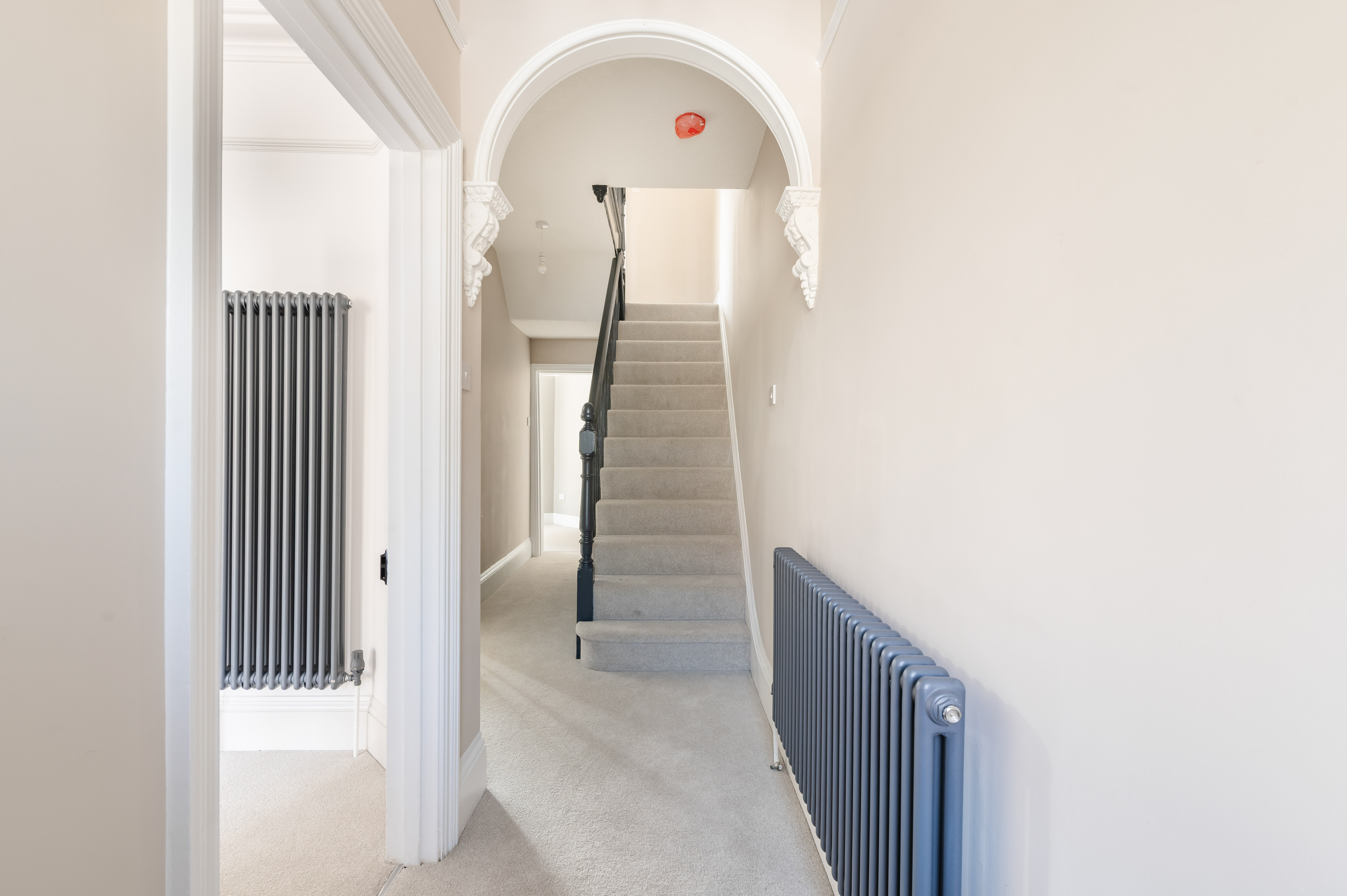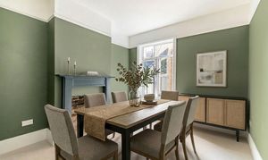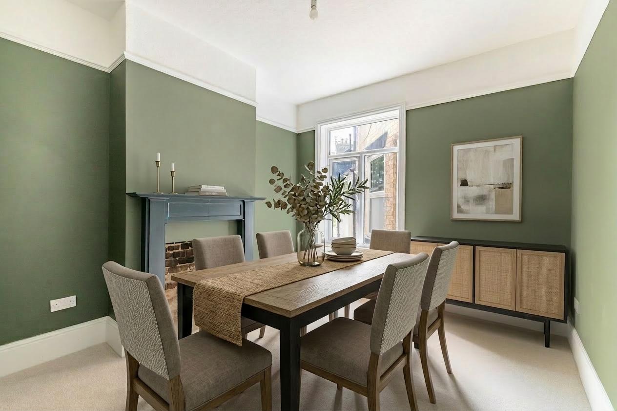 Beyond the front door, a bright and airy entrance hall sets a welcoming tone, with high ceilings and original proportions that immediately hint at the character found throughout the house. The accommodation unfolds with a natural flow, beginning with a comfortable sitting room, an inviting space for everyday living where the decorative fireplace and generous bay window create a calm and relaxed atmosphere.