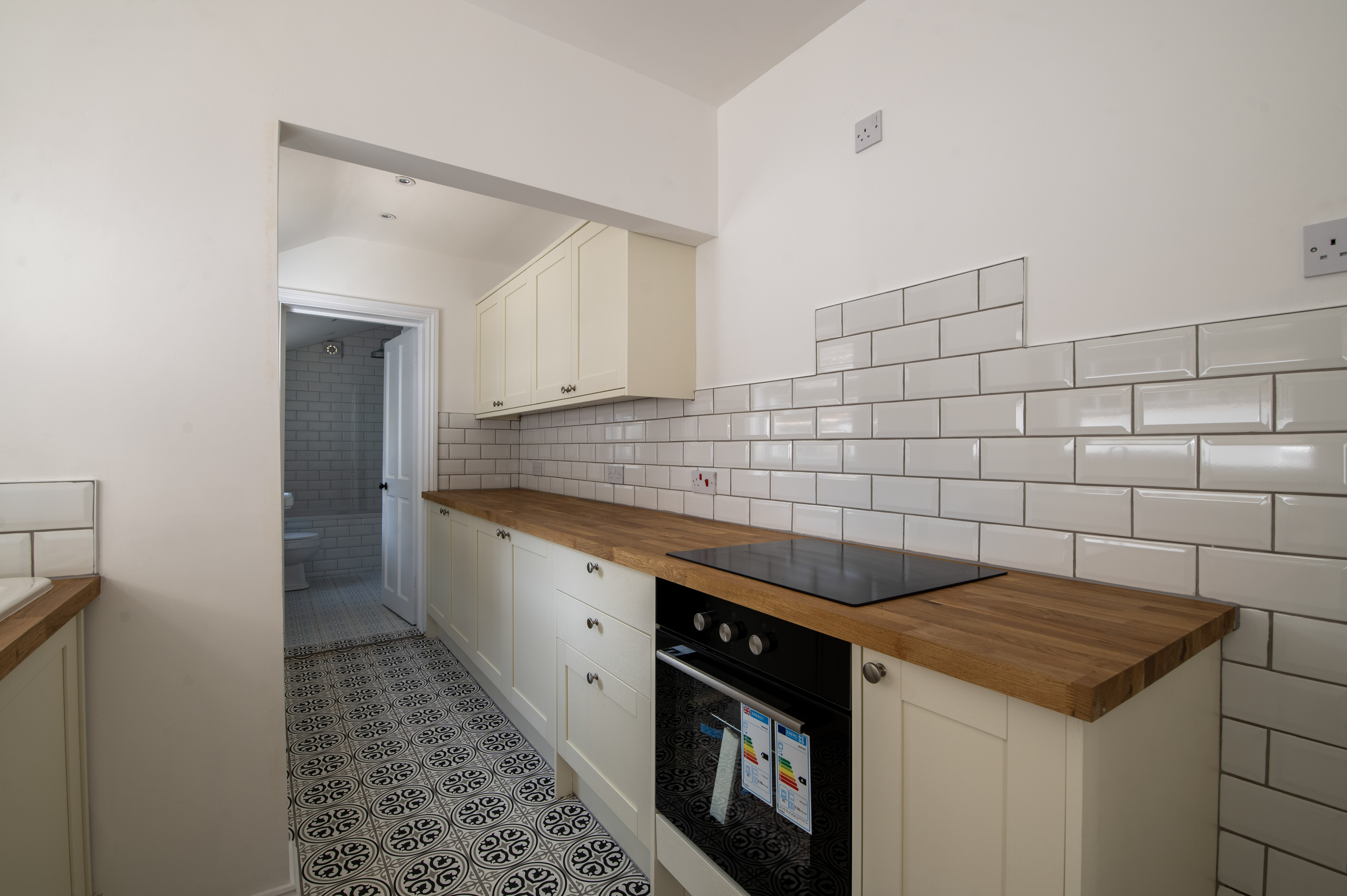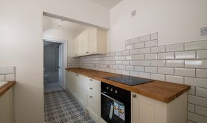 The kitchen has been fitted with modern cabinetry, offering clean lines and practical storage, alongside an integrated oven, sink and drainer unit, and convenient under-counter spaces for appliances. It’s a functional yet welcoming space that works well for everyday cooking and informal dining.