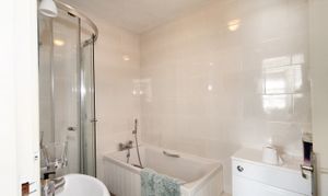 The bathroom suite contains a separate bath, walk-in shower cubicle, low level w/c and basin. Fully tiled flooring and walls with extractor fan ventilation.