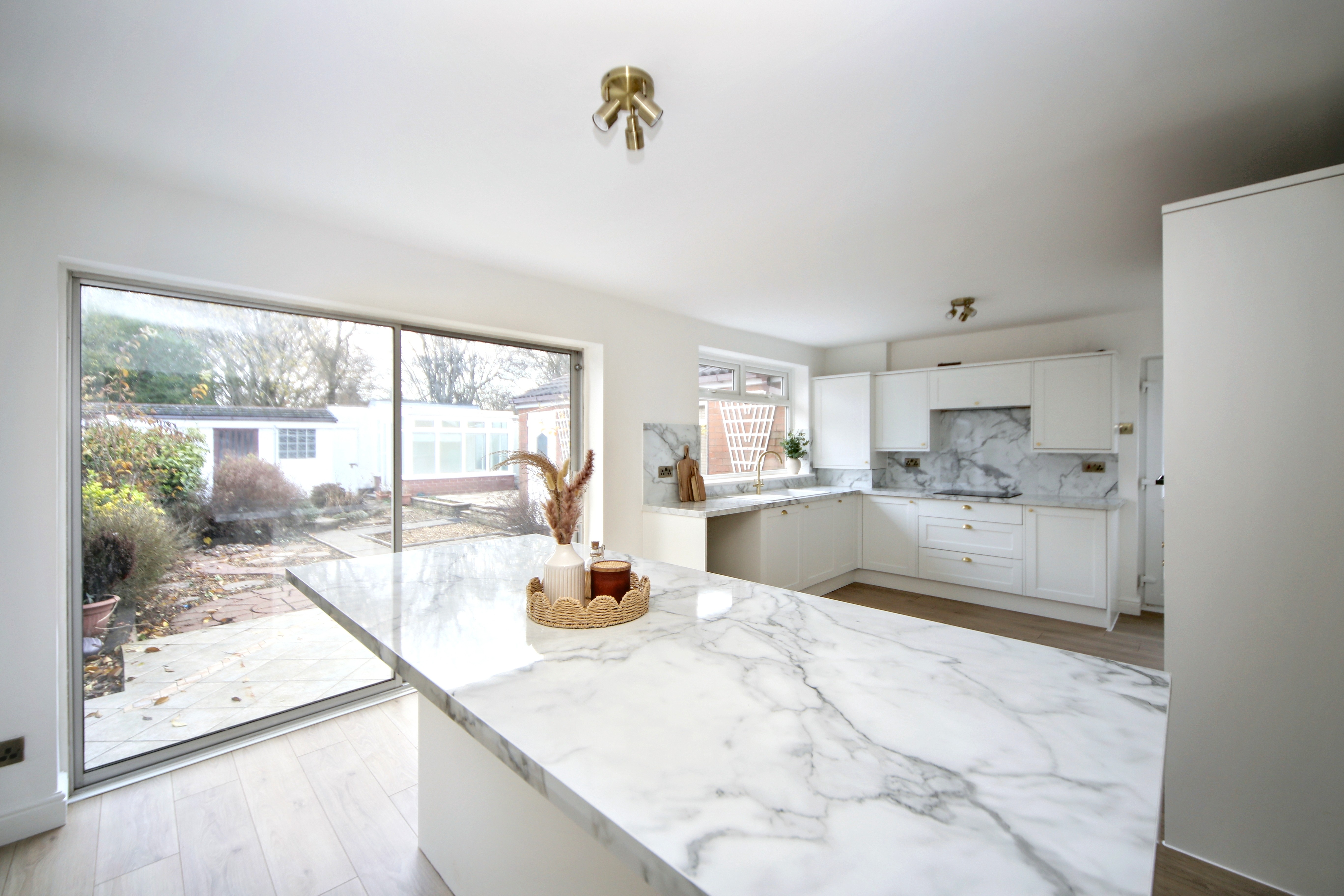 Located on the ever-popular Martland Crescent in Standish Lower Ground, this beautifully renovated three-bedroom, two-bathroom dormer bungalow offers impressive space, modern finishes and fantastic versatility. Set behind a smart paved frontage with mature planting and a long driveway, the home has been thoughtfully extended and upgraded throughout. The entrance hallway leads to a ground-floor bedroom and a newly fitted contemporary bathroom, followed by a stunning open-plan family living, dining and kitchen space complete with a stylish island, perfect for modern family life and entertaining. A bright conservatory, known as the garden room, overlooks the generous rear garden, the perfect peaceful space for reading and relaxing. The garden features patio areas and a useful brick-built storage/outbuilding at the bottom of the garden. Upstairs, there are two further bedrooms, one benefitting from its own W.C. Additional features include a brick-built garage and the overall excellent condition of the home. Ideally located close to local schools, amenities on Wigan Lower Road, scenic canal walks and Standish Lower Ground’s popular parks, this is a superb move-in-ready property with wonderful space both inside and out.