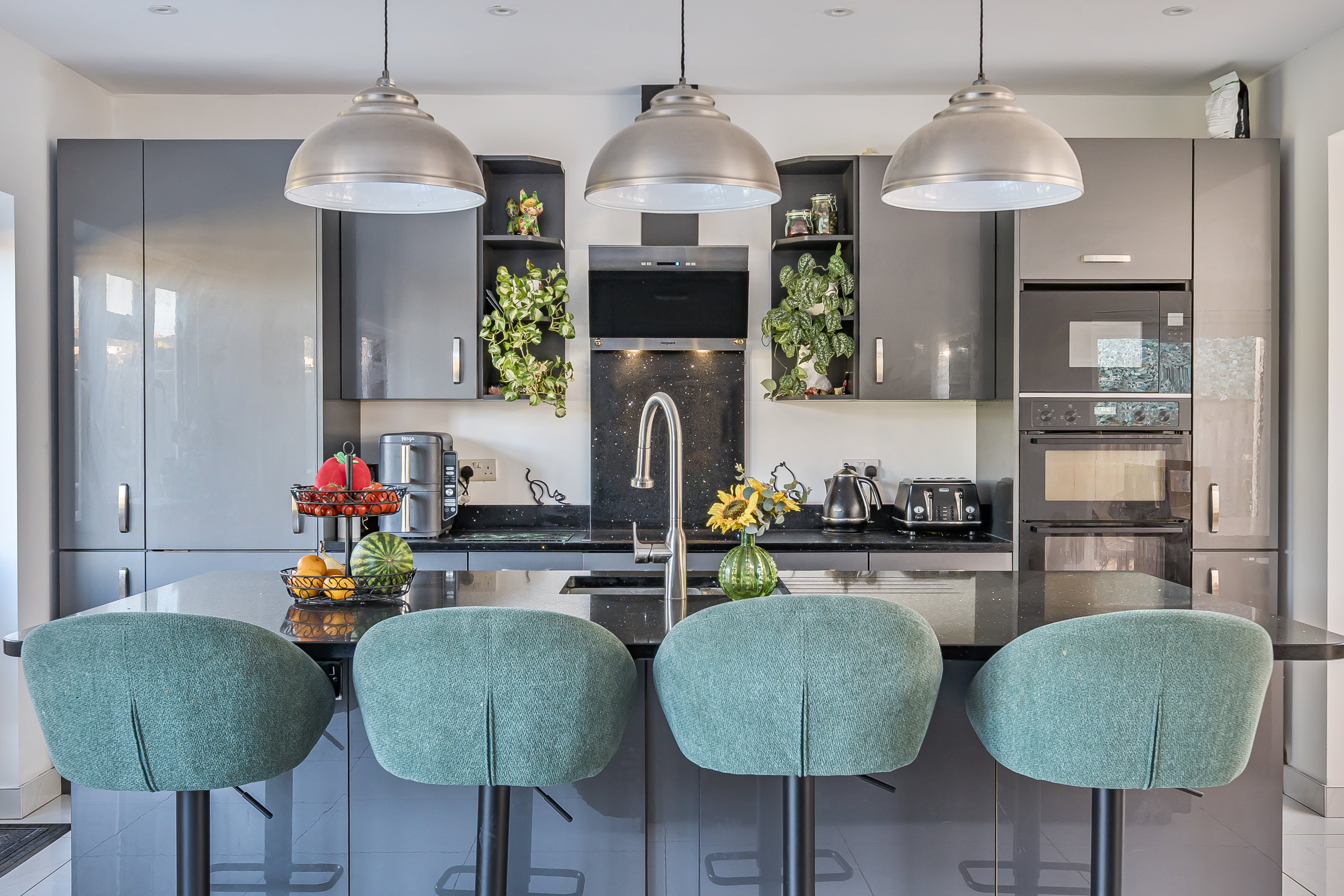- High-spec kitchen with granite worktops, island and integrated appliances