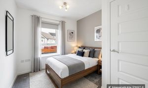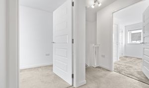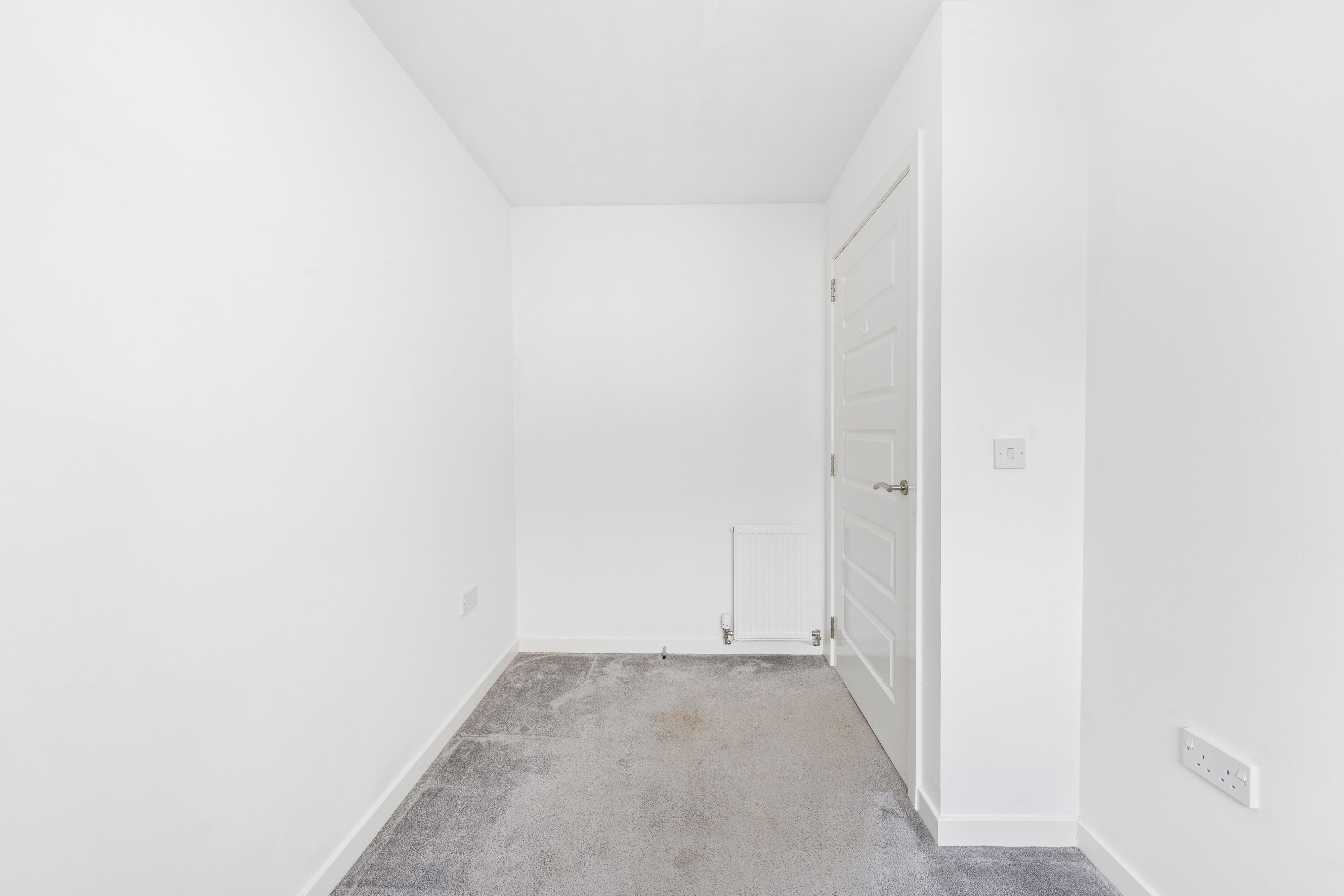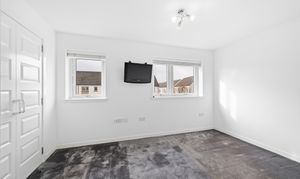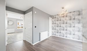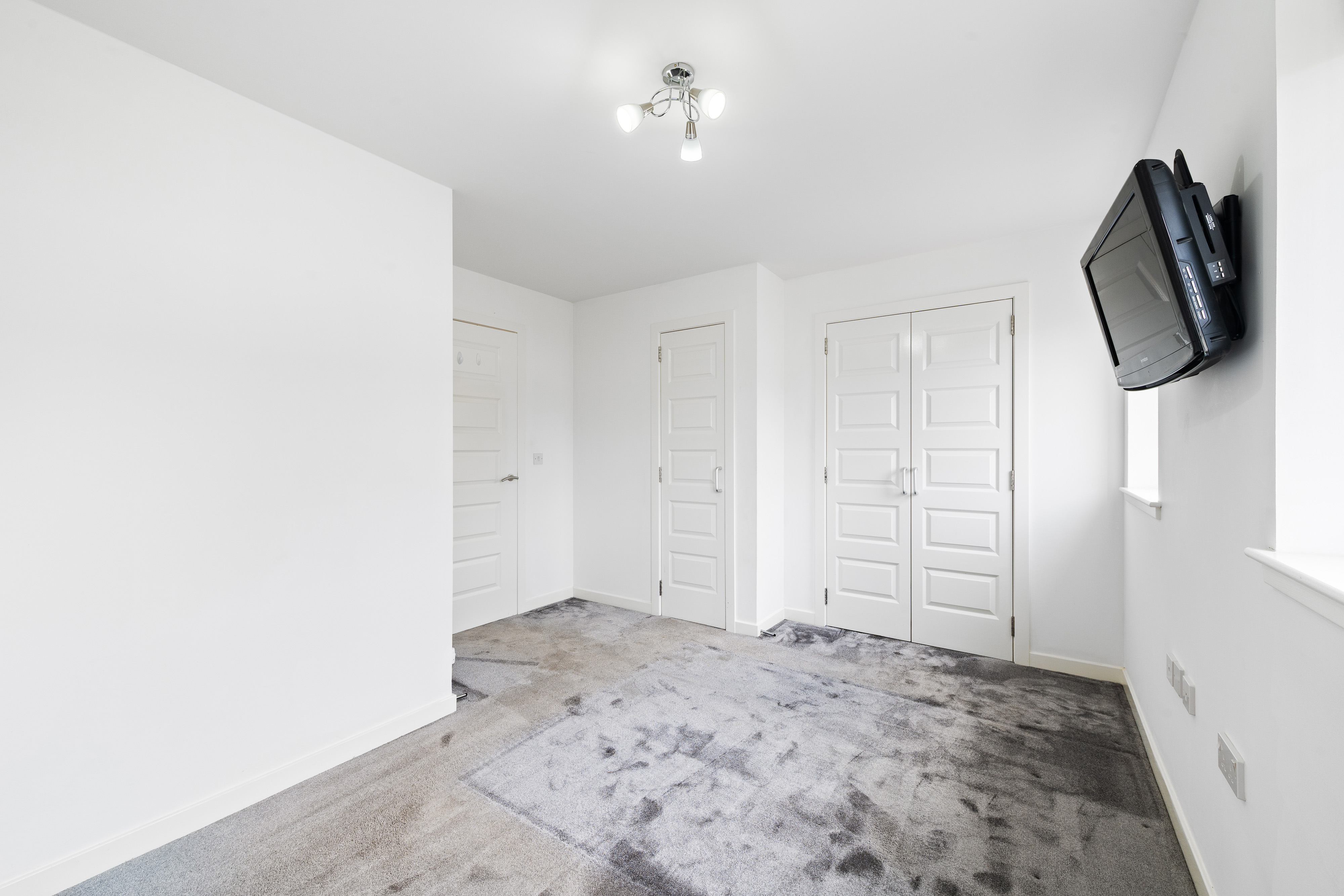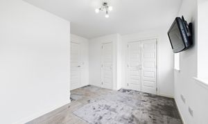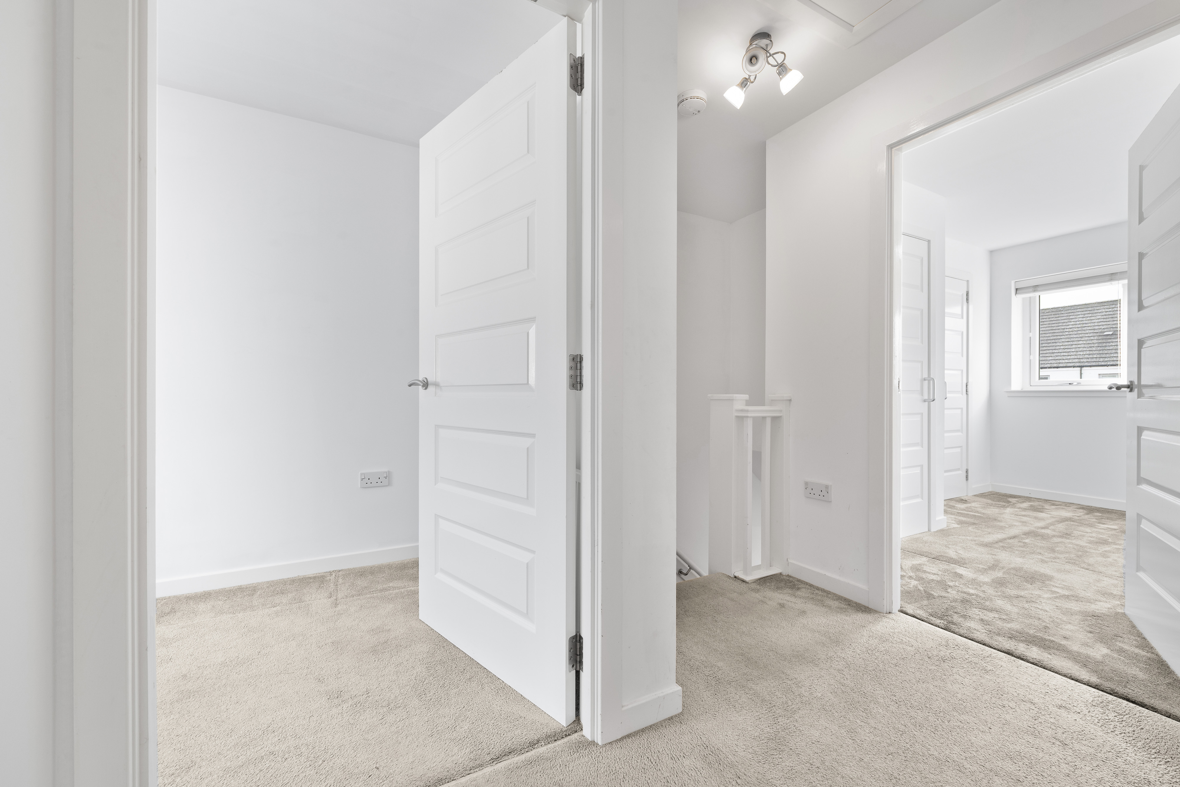 Back onto the landing, bedrooms two and three sit opposite each other and are very similar in size. Both are finished in the same modern grey and neutral palette, making them ideal as children’s bedrooms, guest rooms or even a home office.