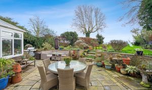 A mature sizable garden which is beautifully planted with established planting. There are areas of lawn and a number of attractive terraces which are perfect for entertaining. The best is yet to come. The views are stunning across open countryside. This land is part of the Ernest Cooke Trust and in the far distance The Chiltern Hills.