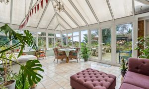 This super family home has so much to offer. Space, light and flexible accommodation. To the ground floor the spacious entrance hall allows access to all the primary reception spaces. The main sitting room has an attractive woodburning stove and double doors through to the conservatory/sunroom. This space is perfect for entertaining and leads out to the rear garden. There is a second sitting room once again with a wood burning stove and suitably large for you to dine as well if you so wished. The kitchen/ breakfast/family space is also a great size.
