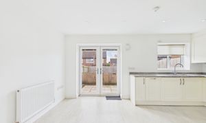 - Bay-fronted living room and open-plan dining kitchen with integrated appliances
