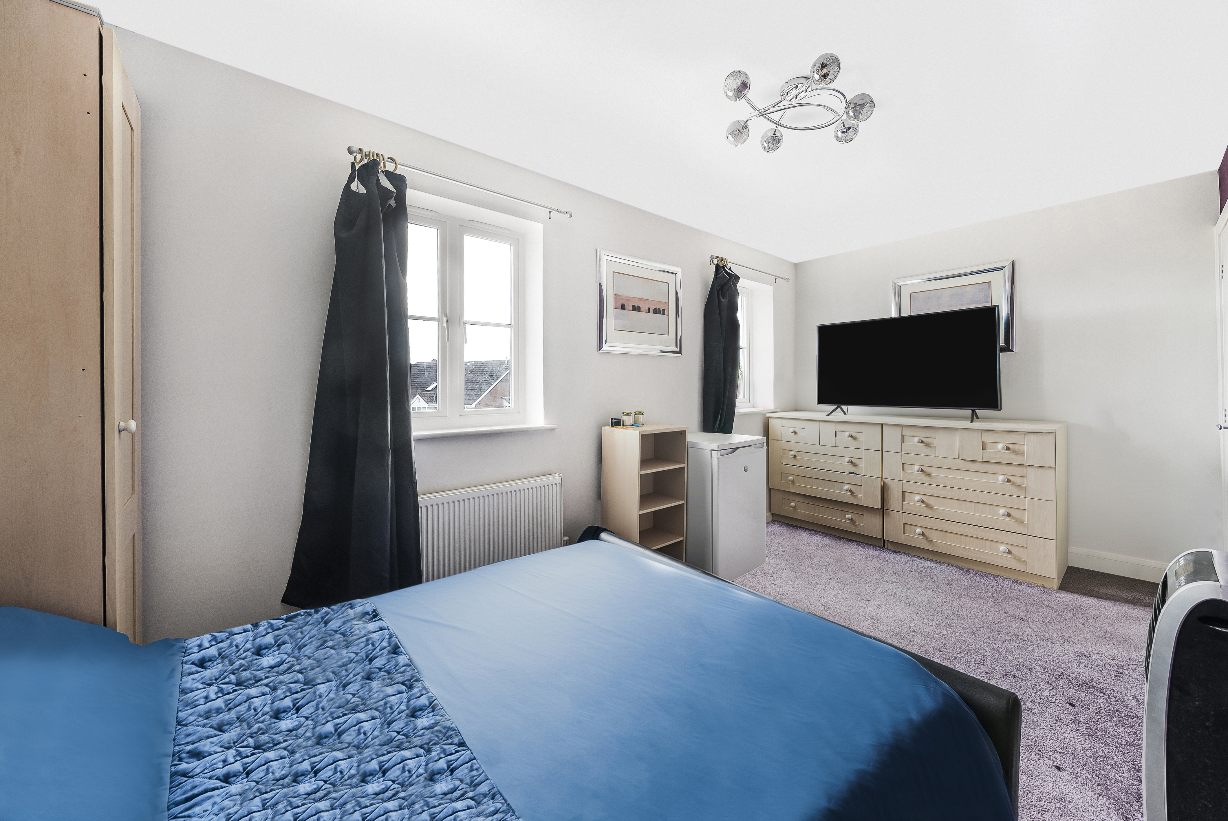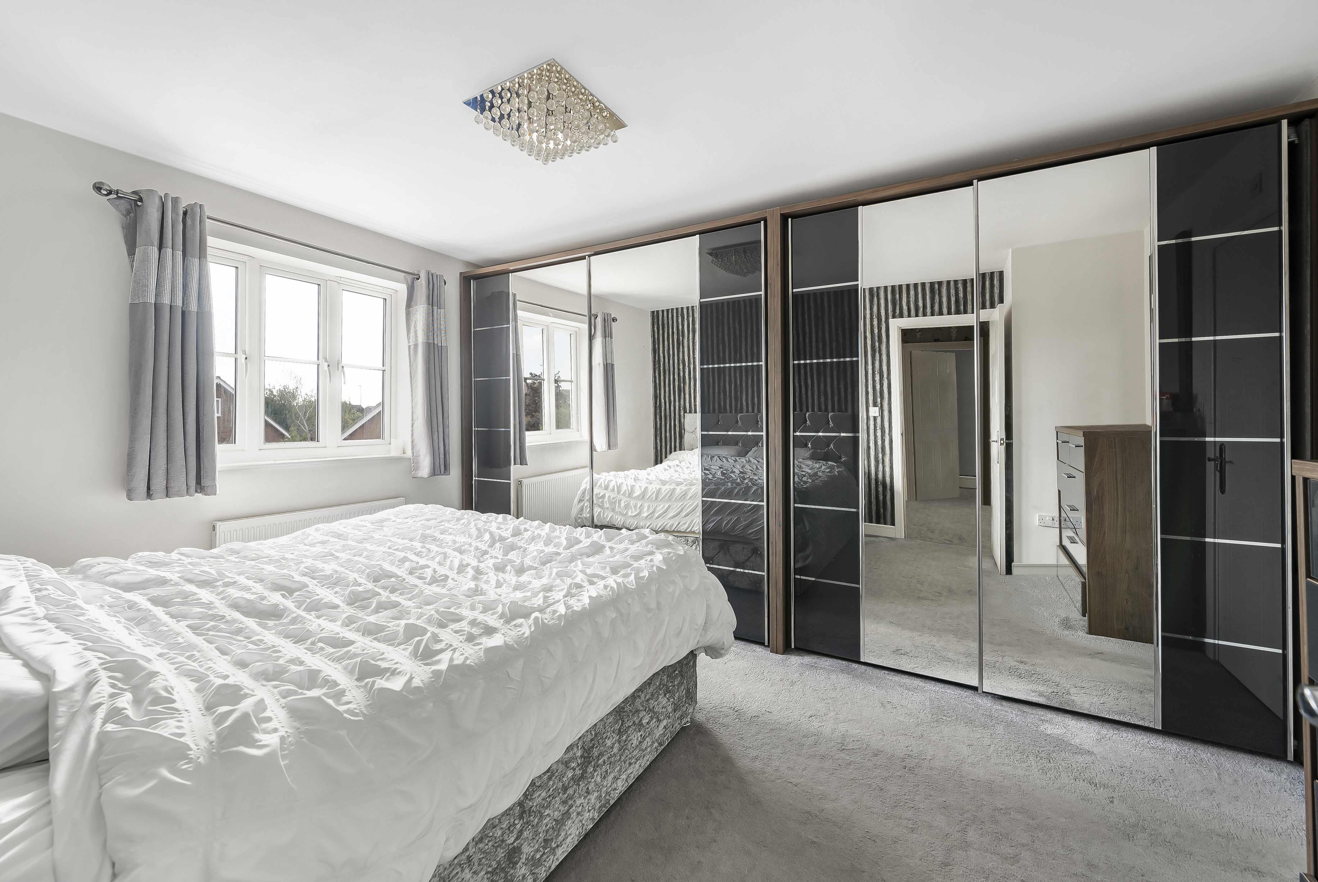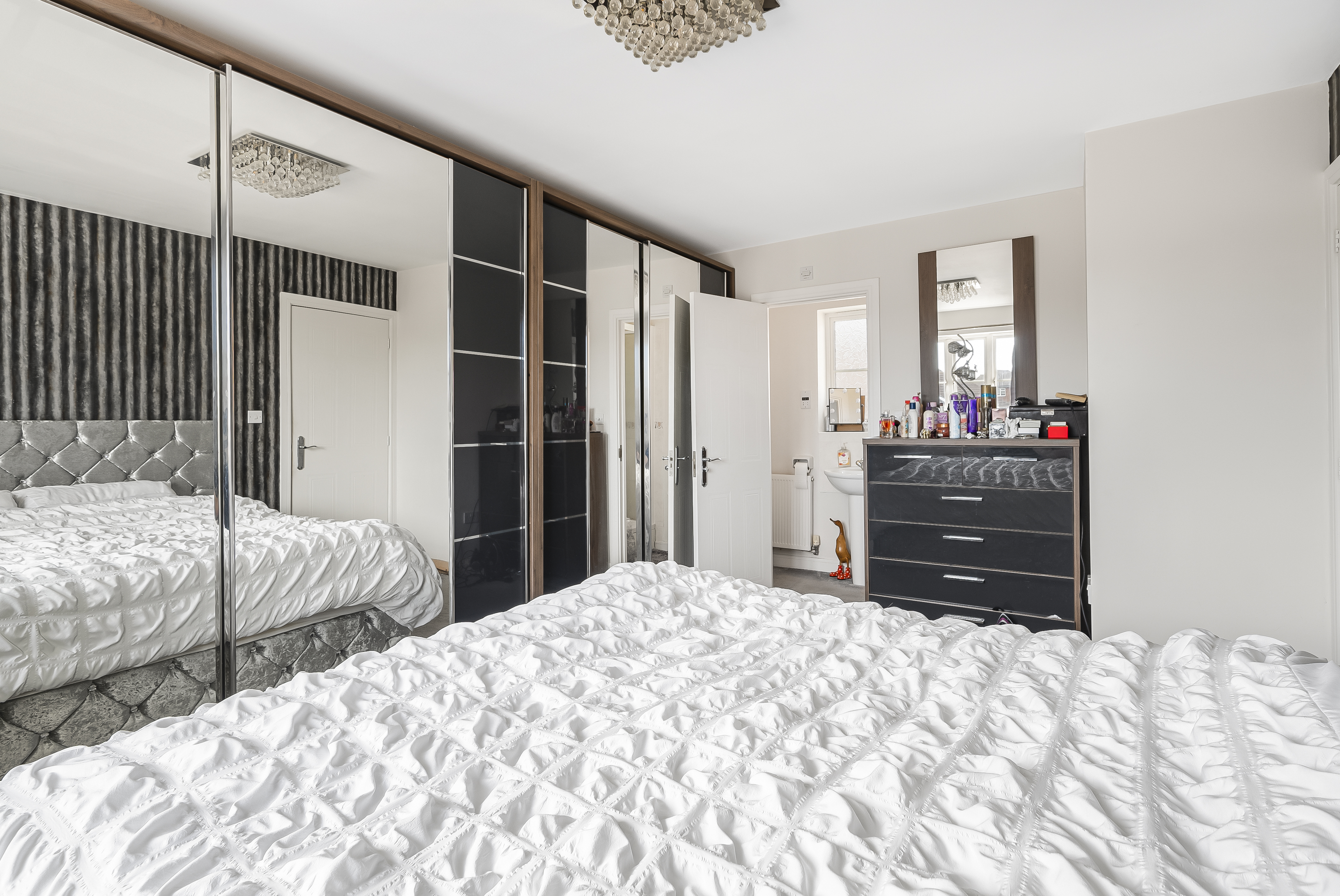 Master Bedroom with extensive built-in wardrobes and a private en-suite shower room