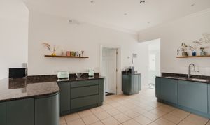 The grand entrance hall is the first of many impressive features in the home, with checkerboard tiled flooring the sweeping original staircase winds up through to a further 3 storeys. The large kitchen diner has modern units with granite worktops along with two integrated dishwashers, fridge/freezer, eye level oven and NEFF induction hob. The dining section of the kitchen has impressive high ceilings, a feature fireplace and a large sash window with original shutters. The lounge has an open working fireplace with marble surround and enjoys views over the garden from the large sash window again with original shutters. To the side is the orangery / sun room bursting with light and a door out to the garden, it has stone tiled flooring and offers a sunny spot to unwind. On the ground floor there is also a pantry and utility room and two downstairs WCs. An extension has been converted from a separate building and integrated into the main house which has lovely views over the rear courtyard, this space has a large room downstairs with bifold doors onto the courtyard and a large loft style room upstairs (with WC), this section could easily be adapted to an annexe or used as a studio.