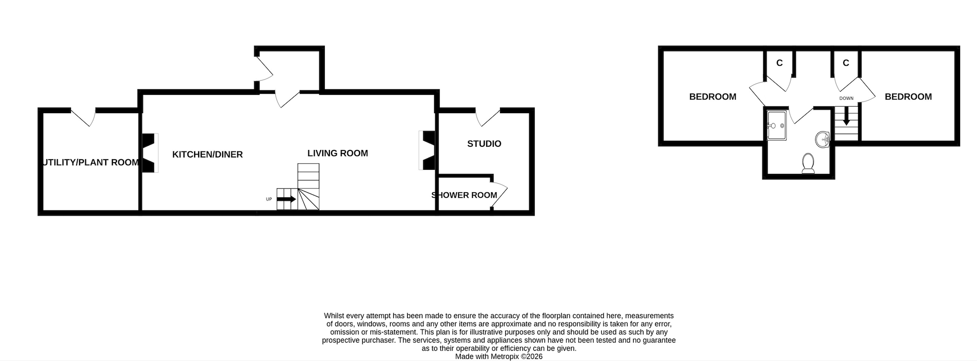 Separate utility room with sink and cupboards. Boiler room to rear with additional storage area.