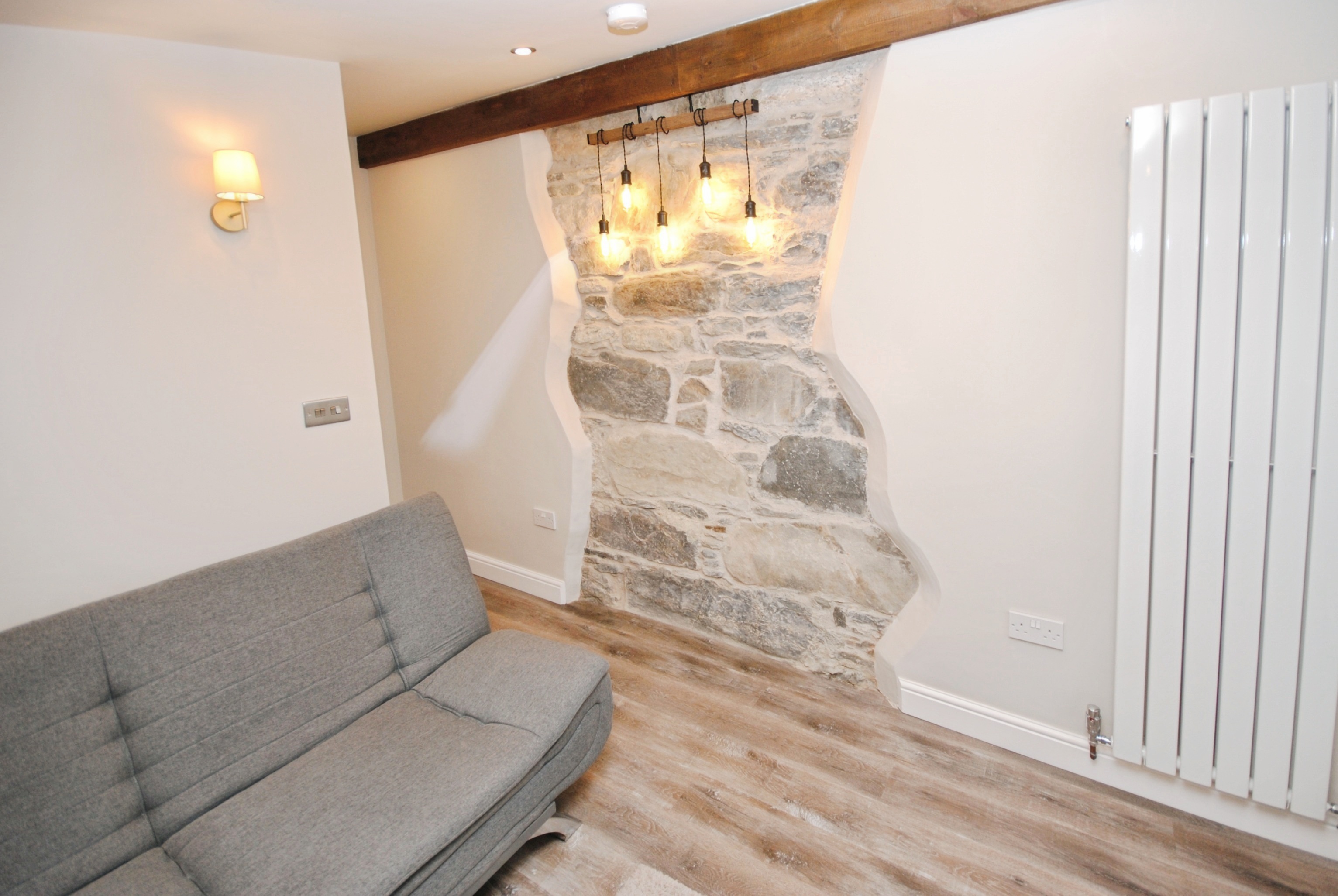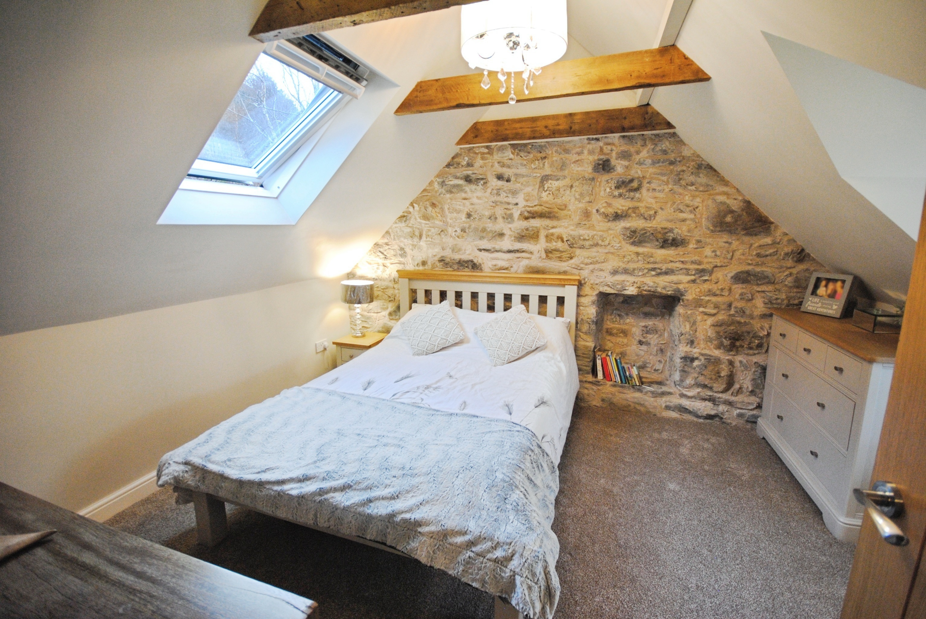 Spacious bedroom with feature stone wall and vertical radiator. Could also be utilised as a Home Office or Gym. En-suite shower-room.