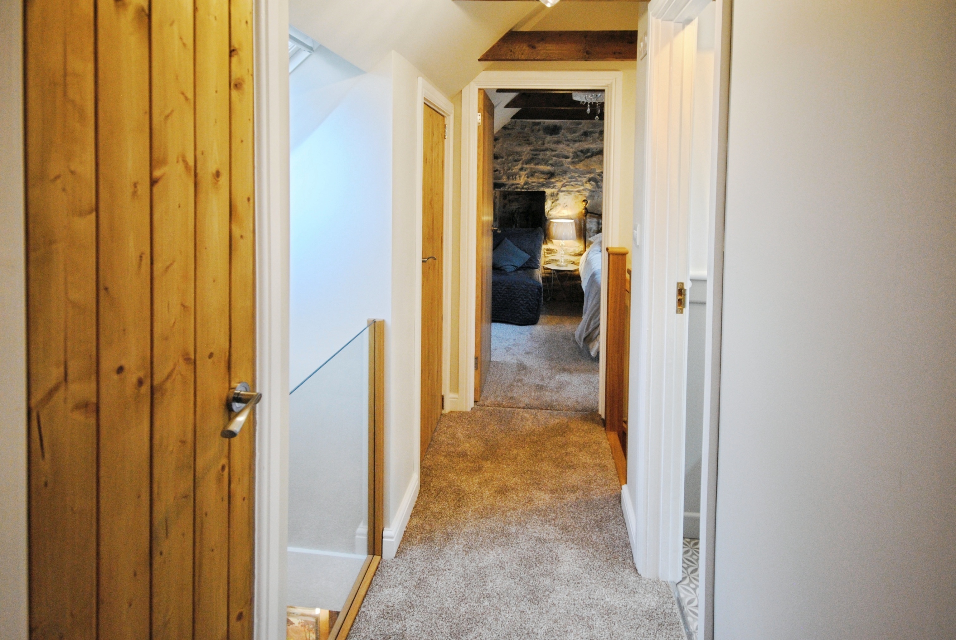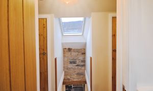 Bright upper hallway with access to bedrooms and shower-room. Velux window gives views across Loch Broom. Two large storage cupboards.