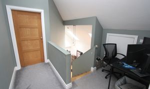 Down lighting. Cupboard. Doors to bedrooms and bathroom.