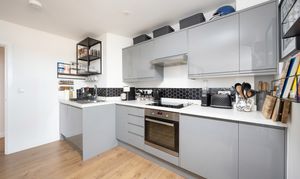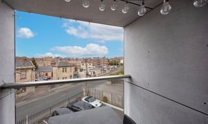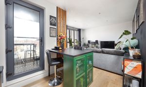 The apartment benefits from a private decked balcony with a contemporary glass balustrade, providing a pleasant outdoor space ideal for relaxing or enjoying a morning coffee. In addition to the balcony, residents have access to well‑maintained communal areas, including a secure bike store and a dedicated bin store, ensuring practicality and convenience.