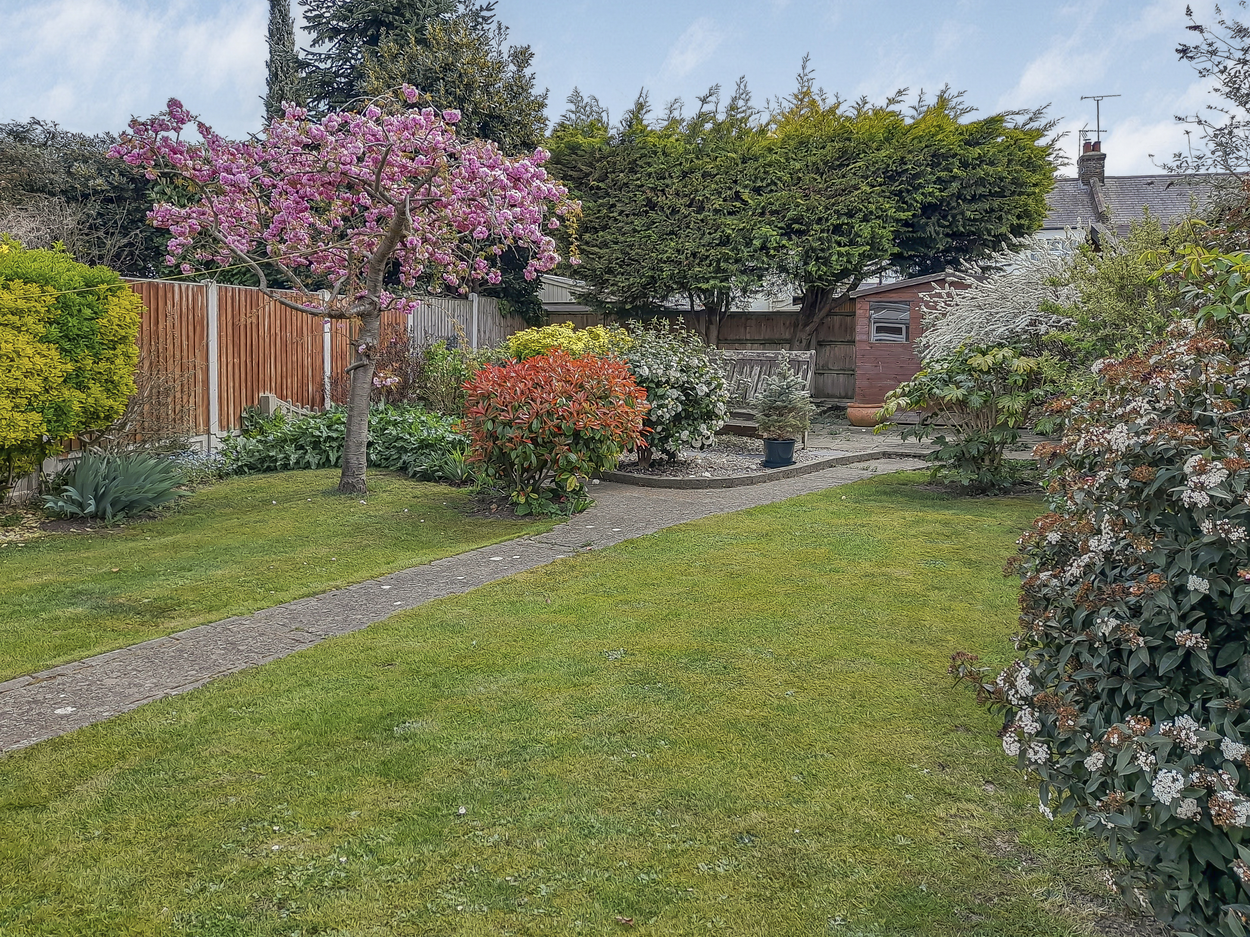 The rear garden is truly the icing on the cake. South-facing, wonderfully private and measuring approximately 60ft in length with excellent width, it enjoys a patio area, sweeping lawn, side access, shed and outside tap. Carefully maintained and thoughtfully landscaped, it feels more like a small park than a typical garden – a genuine sun trap and a perfect place to relax from morning through to evening.
