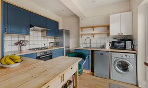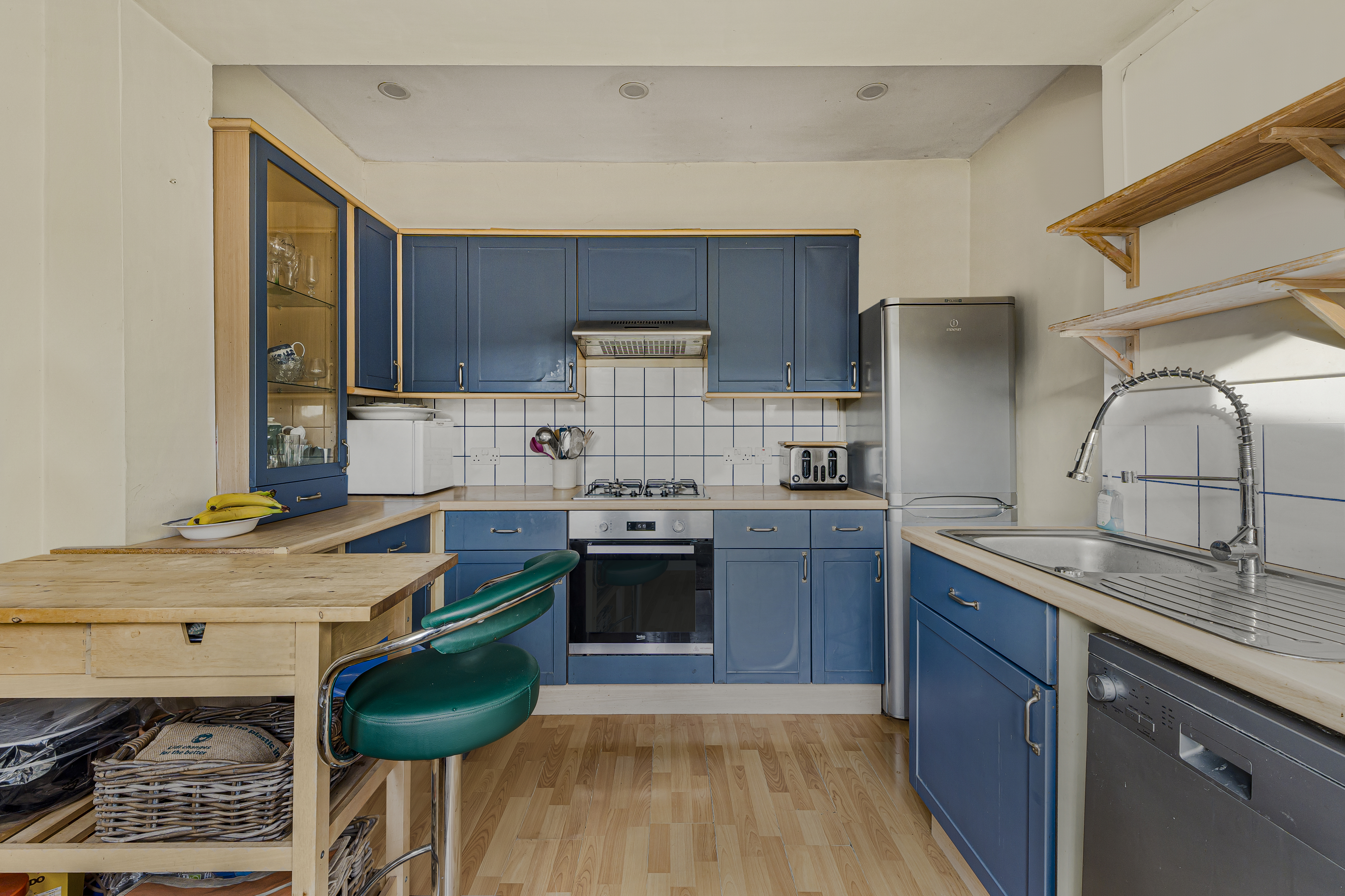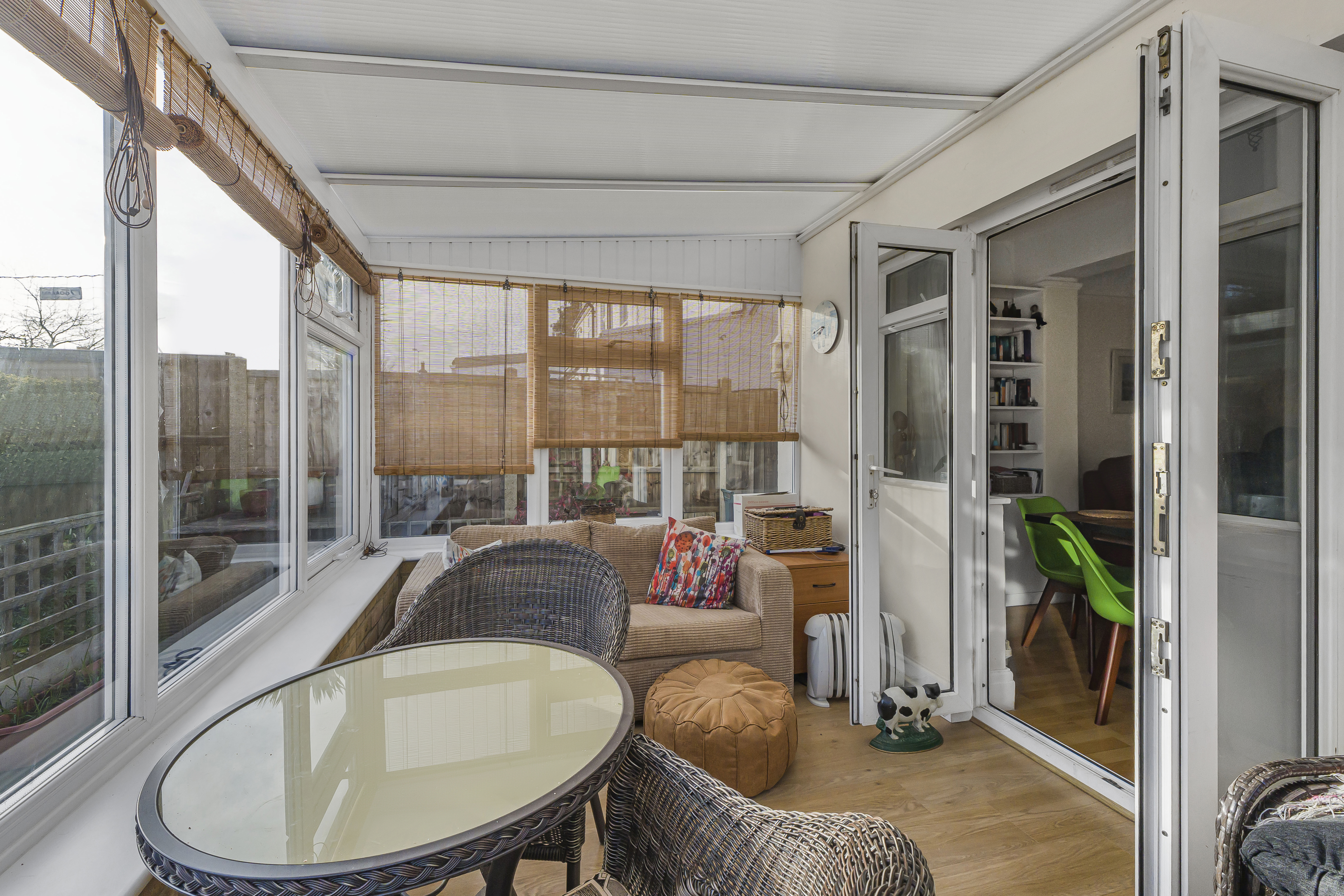 The conservatory, added by the current owner, is a particularly attractive feature – well constructed, filled with natural light and enjoying delightful views across the garden, with doors opening onto a patio seating area. The kitchen is equally well appointed, offering excellent storage and worktop space, along with plumbing for a washing machine and dishwasher, room for a tall fridge/freezer, and direct access out to the garden – ideal for summer entertaining and alfresco dining.