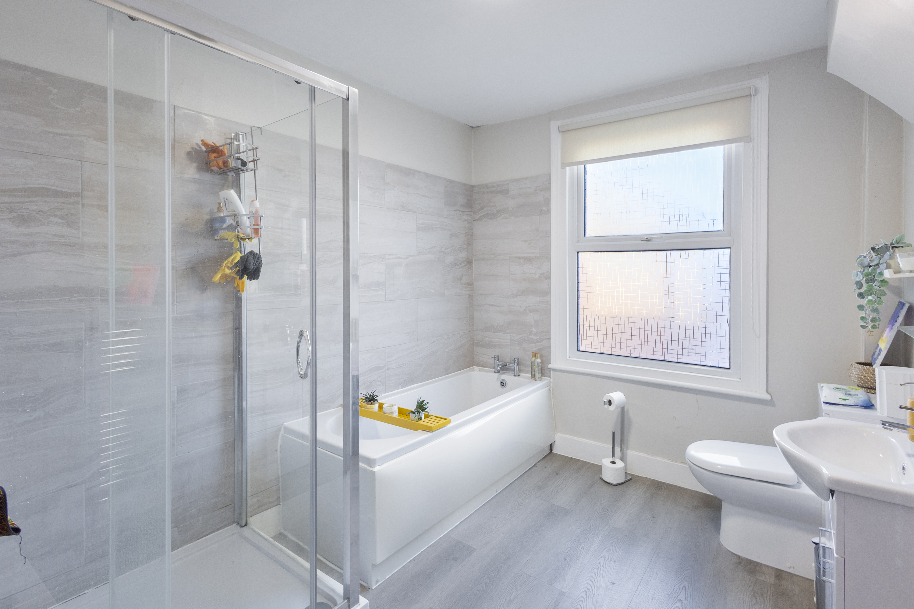 Upstairs, the first floor offers two well-sized double bedrooms and a full family bathroom is located to the rear, conveniently placed for both bedrooms and offering a spacious bathing area.