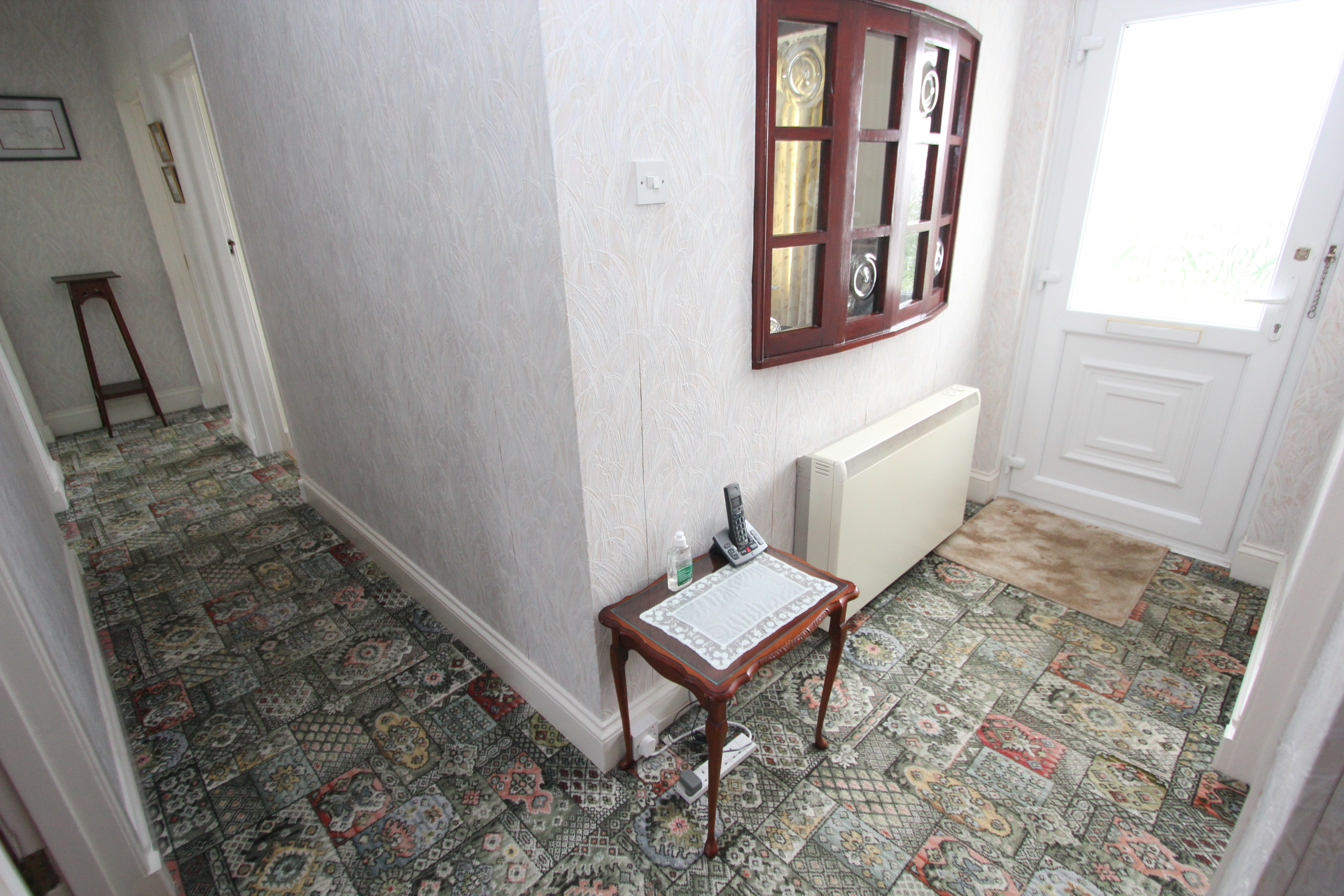 UPVC opaque glazed front entrance door. Storage heater. Doors to bedrooms, dining room, bathroom, sitting room and kitchen.