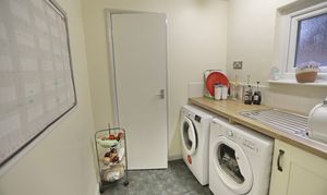 Upon entering, you are greeted by a welcoming hallway with solid wooden flooring that leads to two well-appointed reception rooms, providing ample space for both relaxation and formal entertaining. The heart of the home is a spacious fitted kitchen, thoughtfully designed with contemporary units and integrated appliances and solid oak work surfaces, which seamlessly opens into a bright and airy morning room, offering an ideal setting for casual dining or family gatherings with a large window to enjoy the views and a feature sloping ceiling. The open aspect to the rear ensures the property is not overlooked, enhancing the sense of privacy and tranquillity. Practicality is further enhanced by a ground floor WC, a useful storage room (created from the rear of the garage) and a separate utility room, all designed to meet the demands of busy daily life.