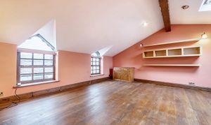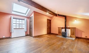 The second floor is home to a characterful sitting room, a cosy and relaxing space that features a living flame gas stove with an oak surround mantle, ceramic tiled hearth, and beautiful oak flooring, creating a perfect spot to unwind at the end of the day.