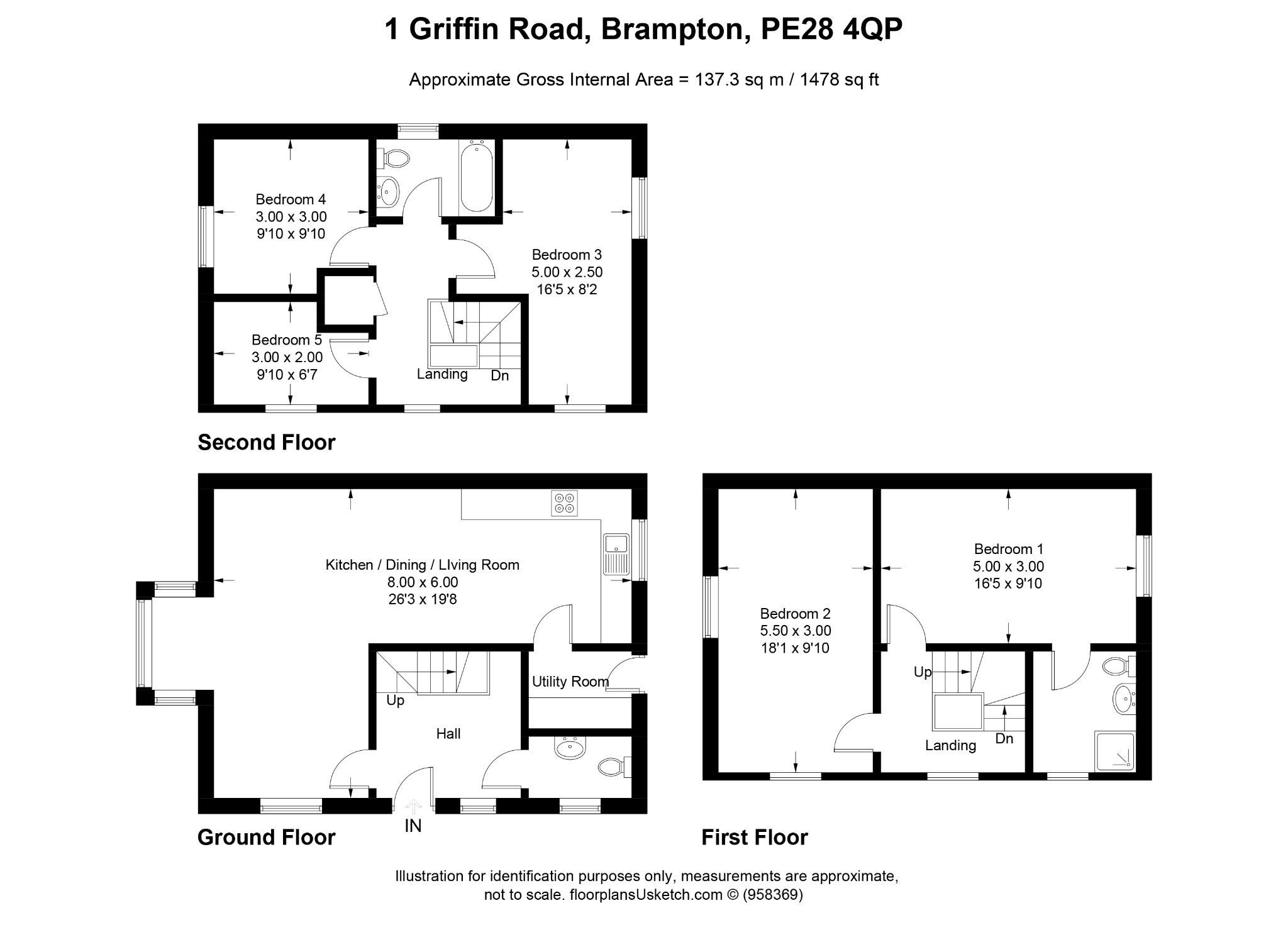 The top floor accommodates two further double bedrooms, one single bedroom, and a family bathroom, making it perfect for a growing family.