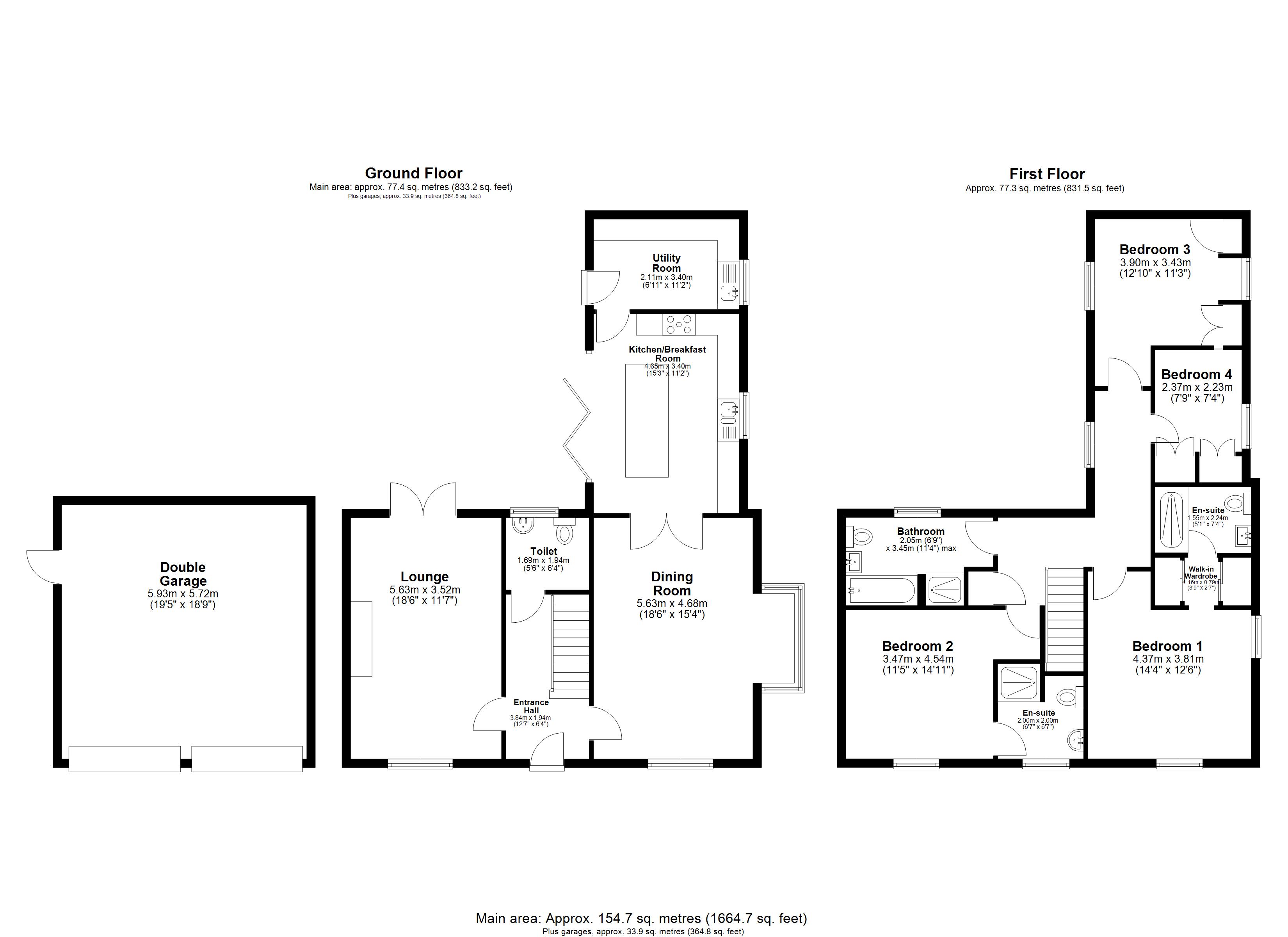 Upstairs to the first floor, this stunning home continues to impress, with 4 well-proportioned double bedrooms, integrated wardrobes, and a family bathroom, comprising a bath, a shower, WC and hand wash basin. The primary bedroom is particularly generous and enjoys a walk-in wardrobe and en-suite, with a shower, WC and sink. Bedroom 2 also enjoys its own en-suite shower room.