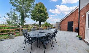 Outside, to the rear, the landscaped garden is a generous size, fully enclosed by fencing and offering a lovely spot to sit and enjoy nature. It is laid to paved patio, providing space for garden furniture, enjoying family meals and entertaining guests. There are lovely field views to the rear, plenty of space for potted plants, and scope for new owners to put their touches on things.