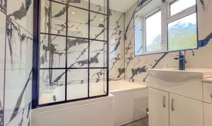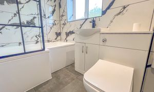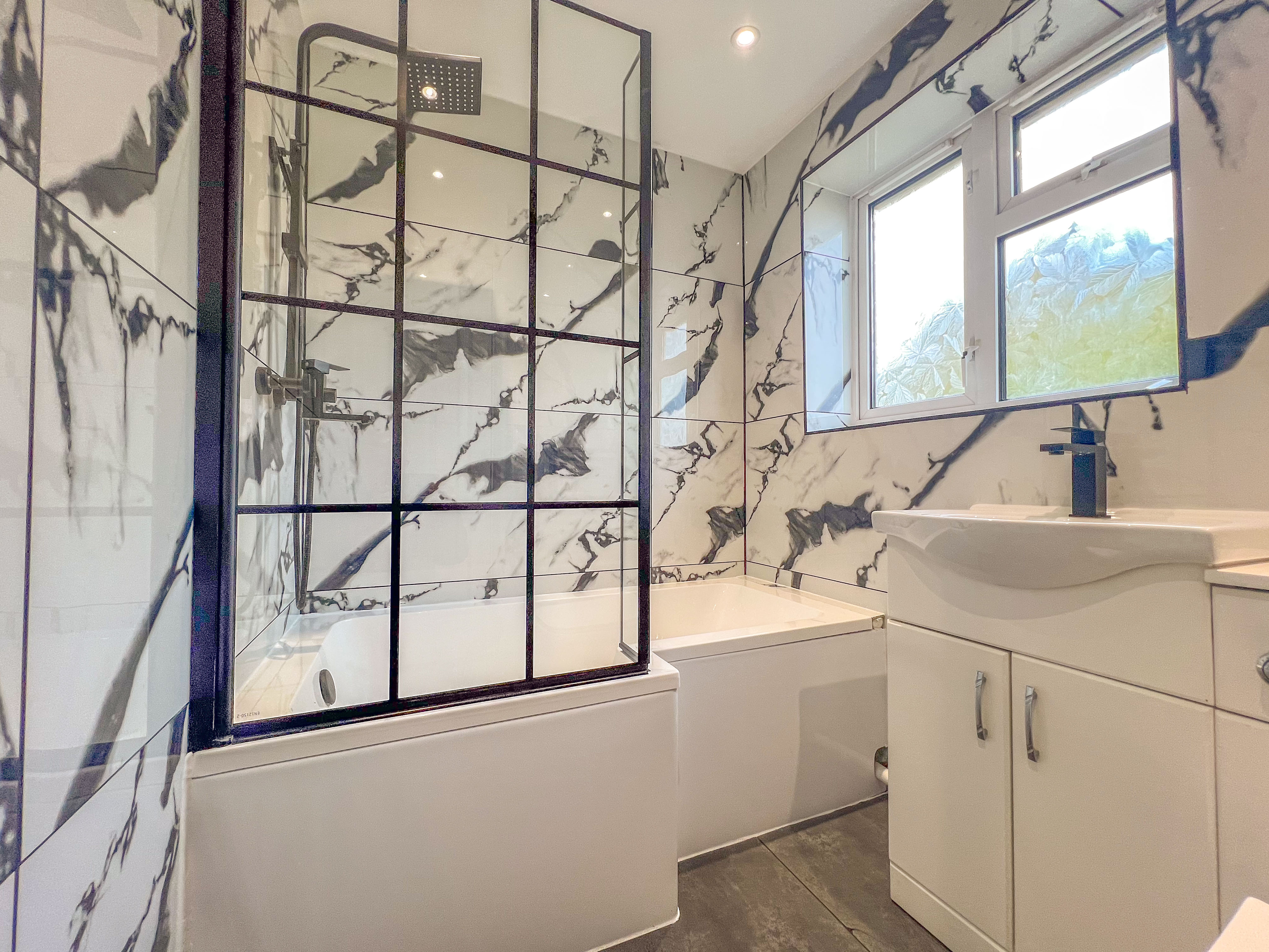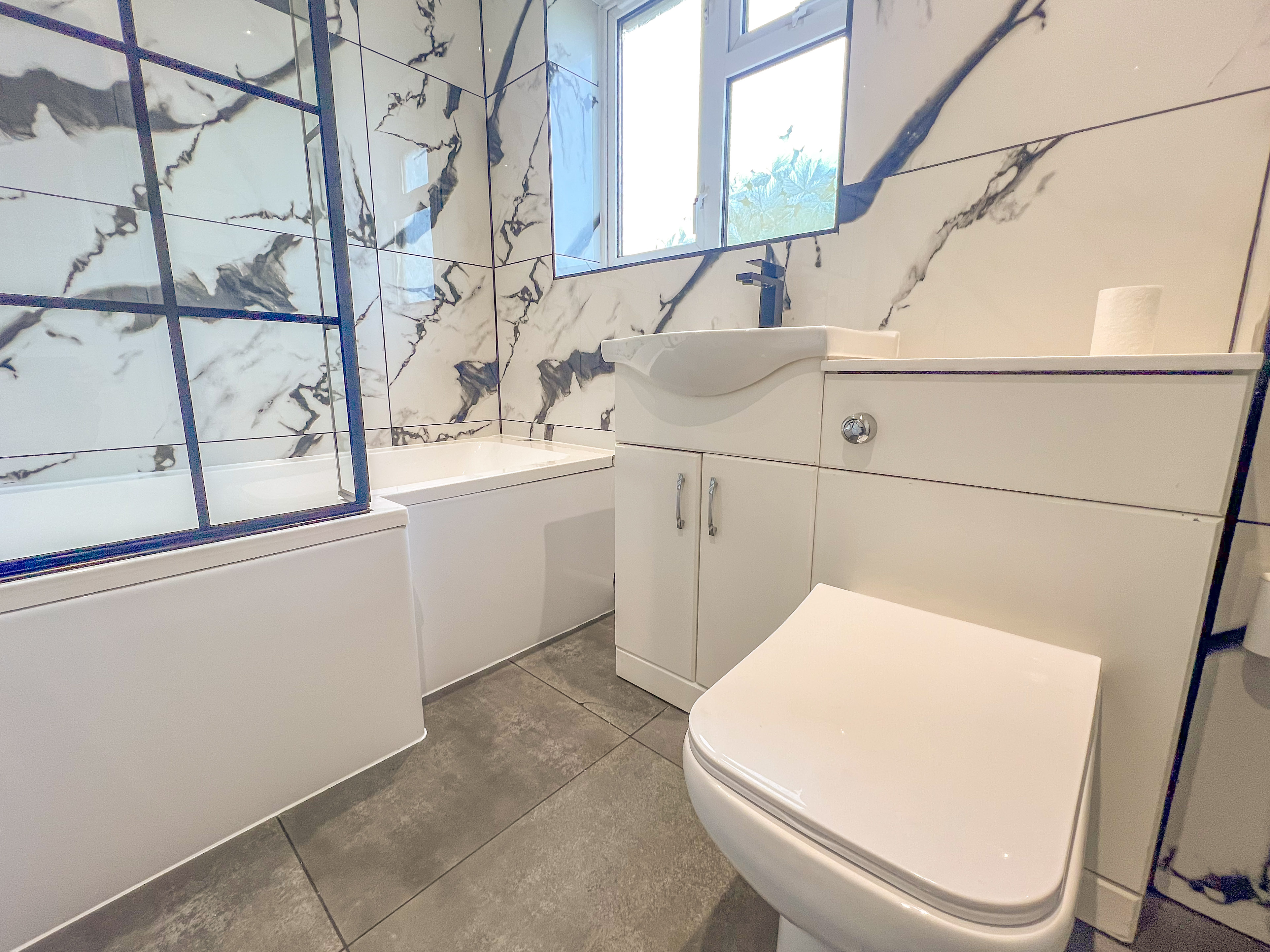 Upstairs, the first floor offers three well-proportioned bedrooms, each designed with flexibility for family, guests or home office use. The bathroom has been stylishly refitted with a modern suite, combining clean lines with everyday comfort.