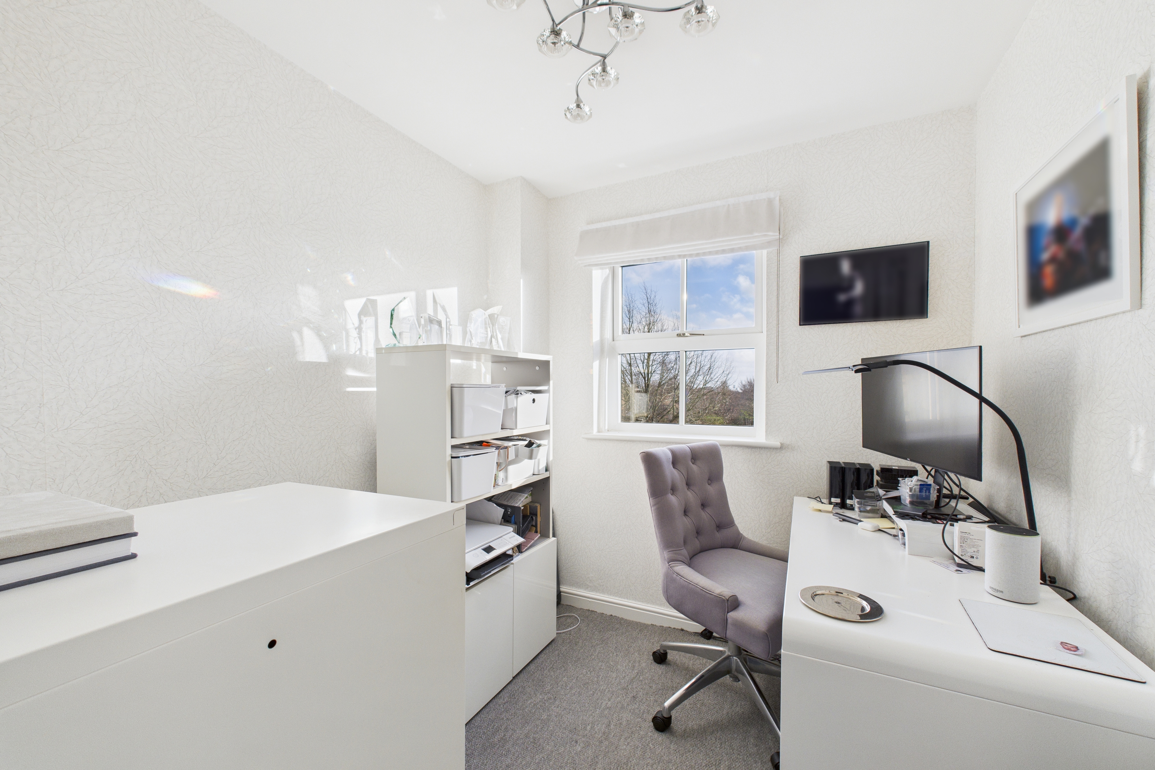 A separate study sits on the ground floor, offering a dedicated workspace or an additional reception room, perfect for home working, a playroom or a quiet reading space.