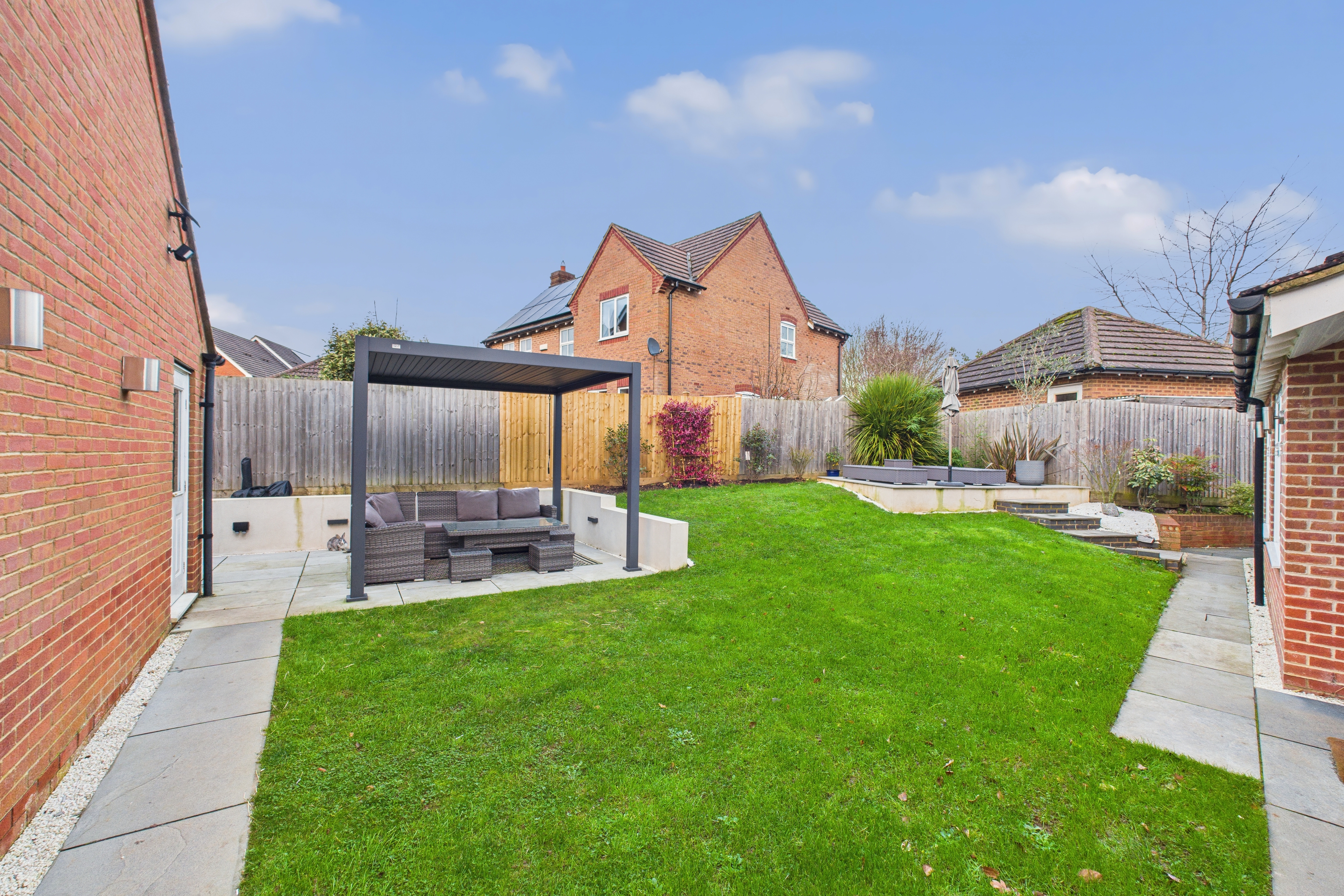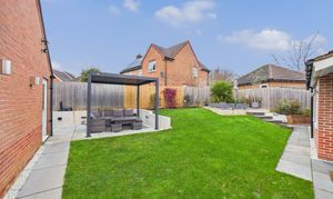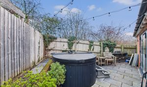 The private rear garden has been thoughtfully designed for both relaxation and outdoor living. A spacious, well-kept lawn provides an ideal play space, while the patio area with undercover seating creates an inviting spot for year-round entertaining. An additional patio area houses a hot tub, offering a perfect space to unwind.