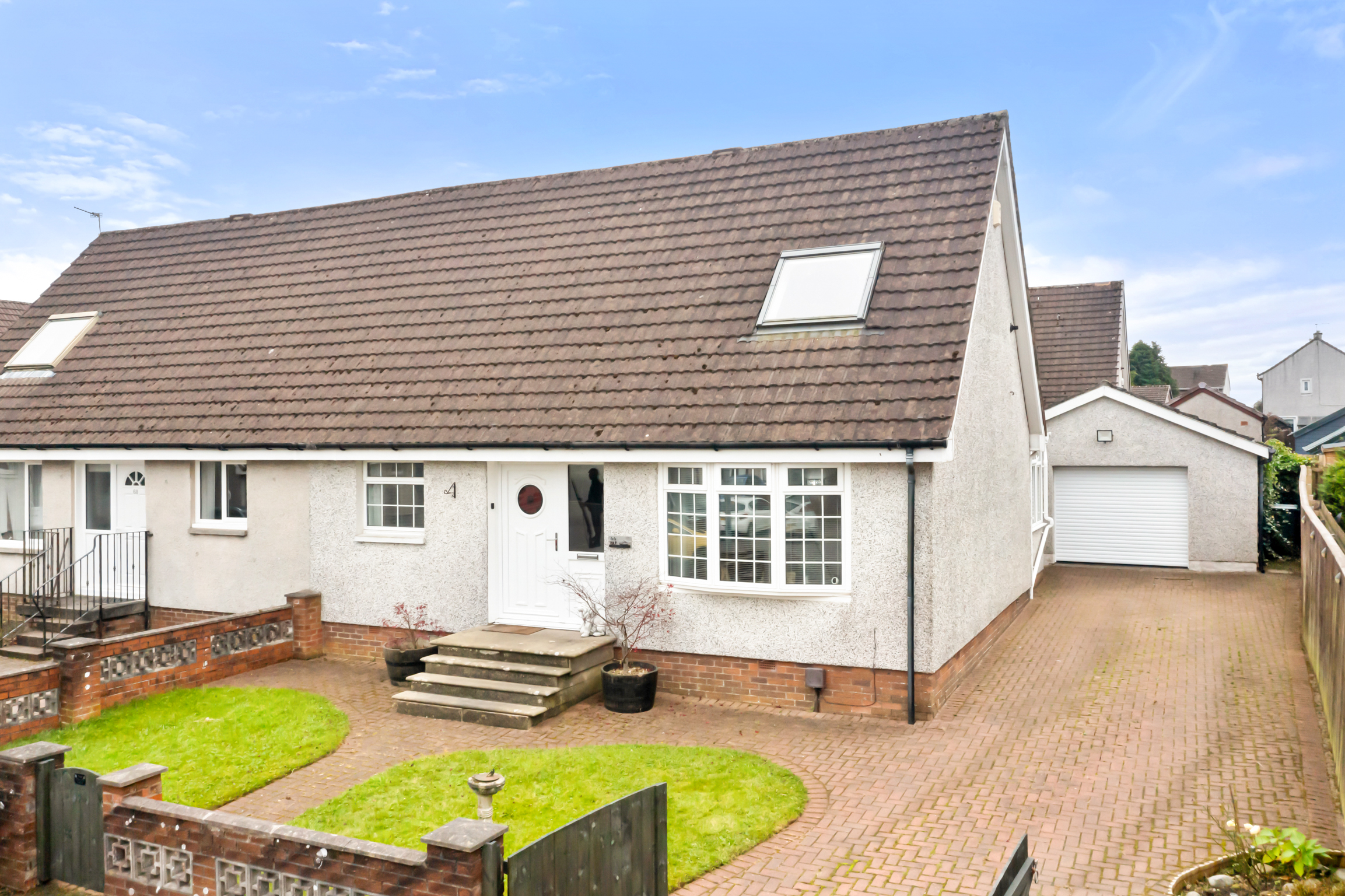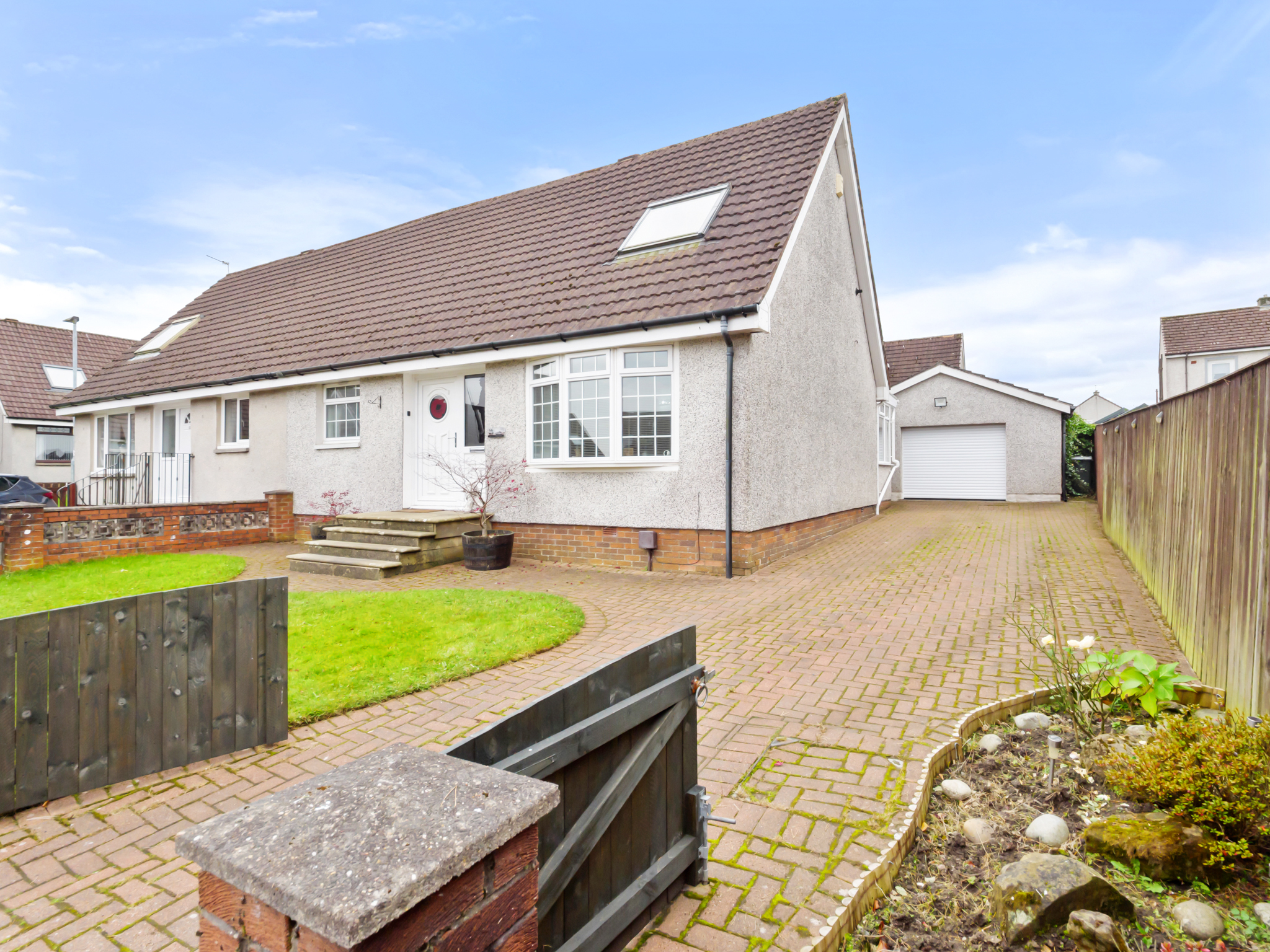 A monoblock driveway provides ample off-street parking and leads directly to a detached garage, offering both convenience and secure vehicle storage. The driveway’s durable finish ensures low maintenance while complementing the property’s exterior.