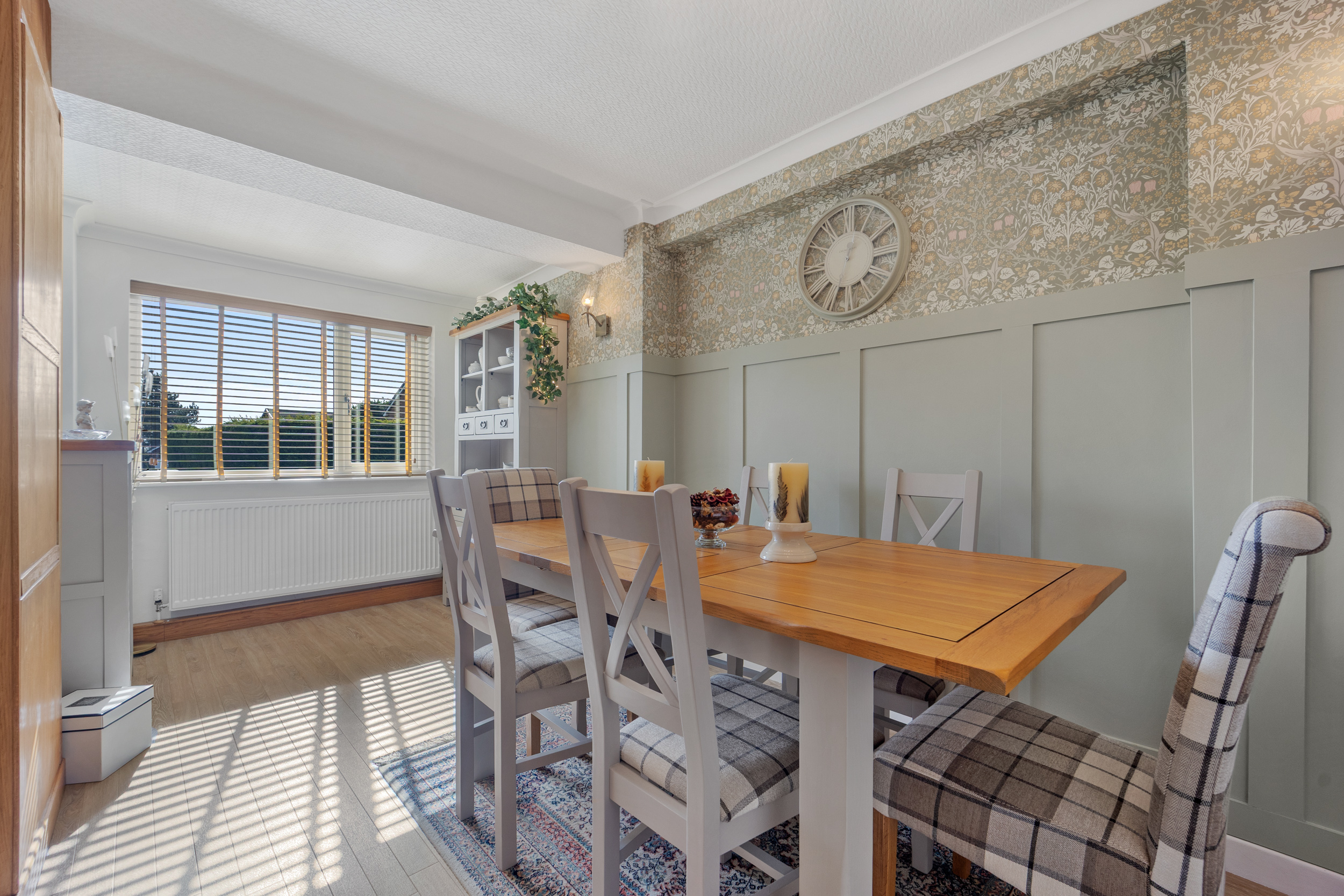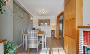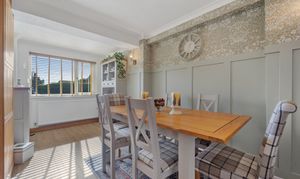 Leading on from the kitchen, the morning room offers a more relaxed setting, perfect for slower moments throughout the day. Decorative wall panelling adds character, while patio doors open directly onto the garden, creating an easy connection to the outside during the warmer months.