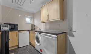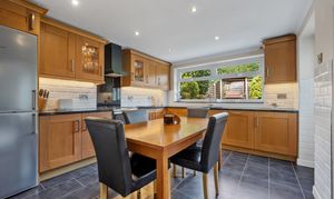 At the heart of the home is the oak shaker-style kitchen, installed by the current owners and finished with black granite worktops. With a large window drawing in natural light and space for informal dining, it’s a room that works effortlessly for both everyday living and entertaining. Whether it’s a morning coffee at the table or hosting friends, the kitchen feels both practical and welcoming. Just off here, a well-appointed utility room provides additional storage and laundry space, keeping the main living areas organised.