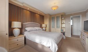 The remaining bedrooms are equally versatile, with three further doubles providing excellent accommodation, two of them enhanced by fitted Rothwell & Thomas wardrobes. The fifth bedroom is currently used as a study, offering flexibility as a home office, nursery, or dressing room.