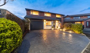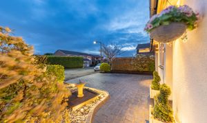 To the front, the property makes an immediate impression with its smart, contemporary finish and concrete-imprinted driveway providing ample parking. Subtle ground-level lighting enhances both practicality and kerb appeal, while the quiet, well-maintained setting adds to the overall appeal.