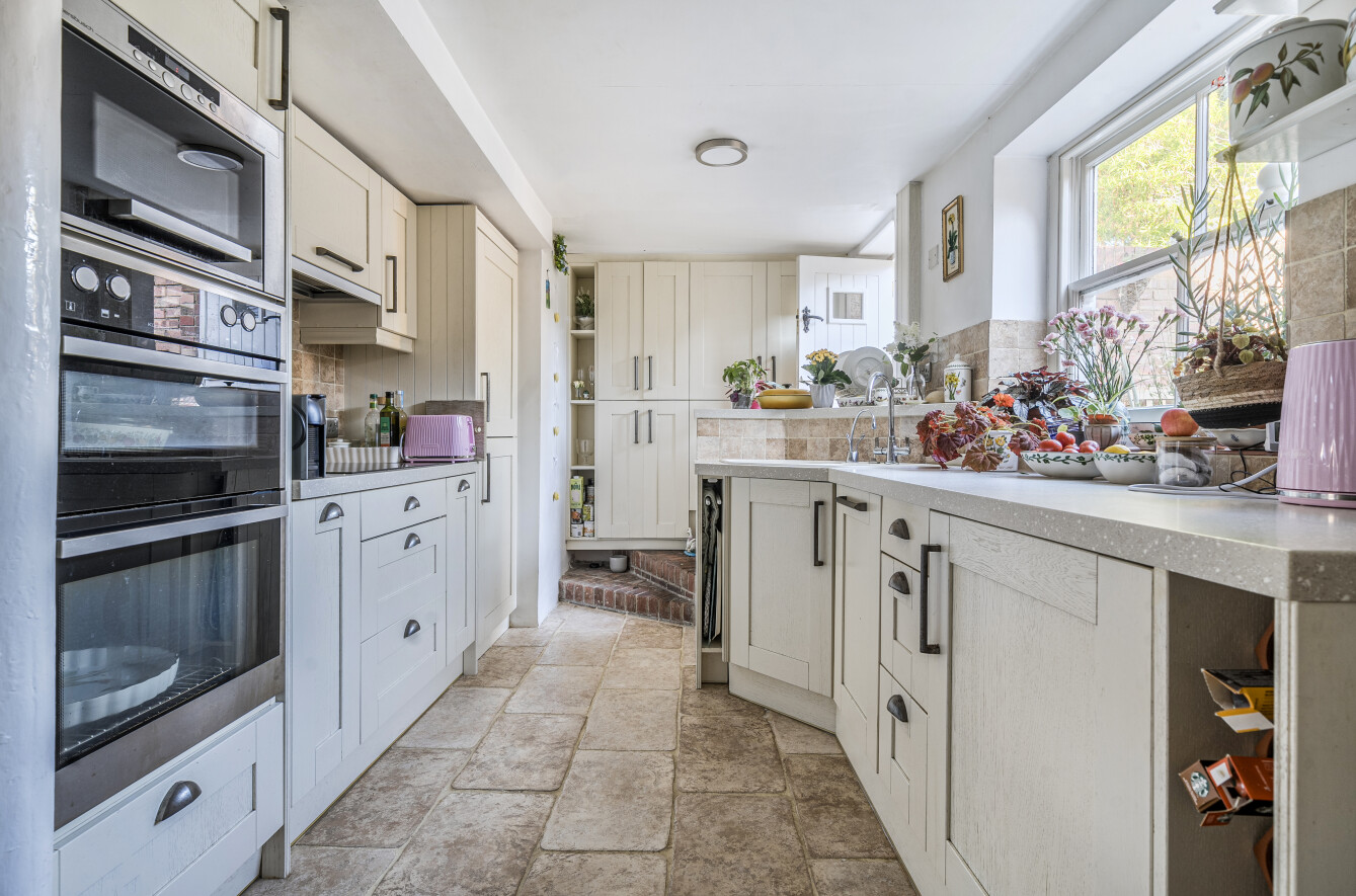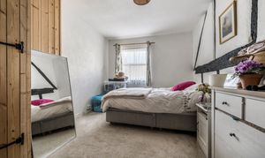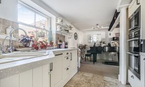 On the ground floor, the cosy sitting room is enhanced by an exposed brick fireplace and beams, leading through to a well-proportioned kitchen/dining area that provides ample space for family meals and entertaining. Upstairs, there are three bedrooms, each with its own character, and a family bathroom.