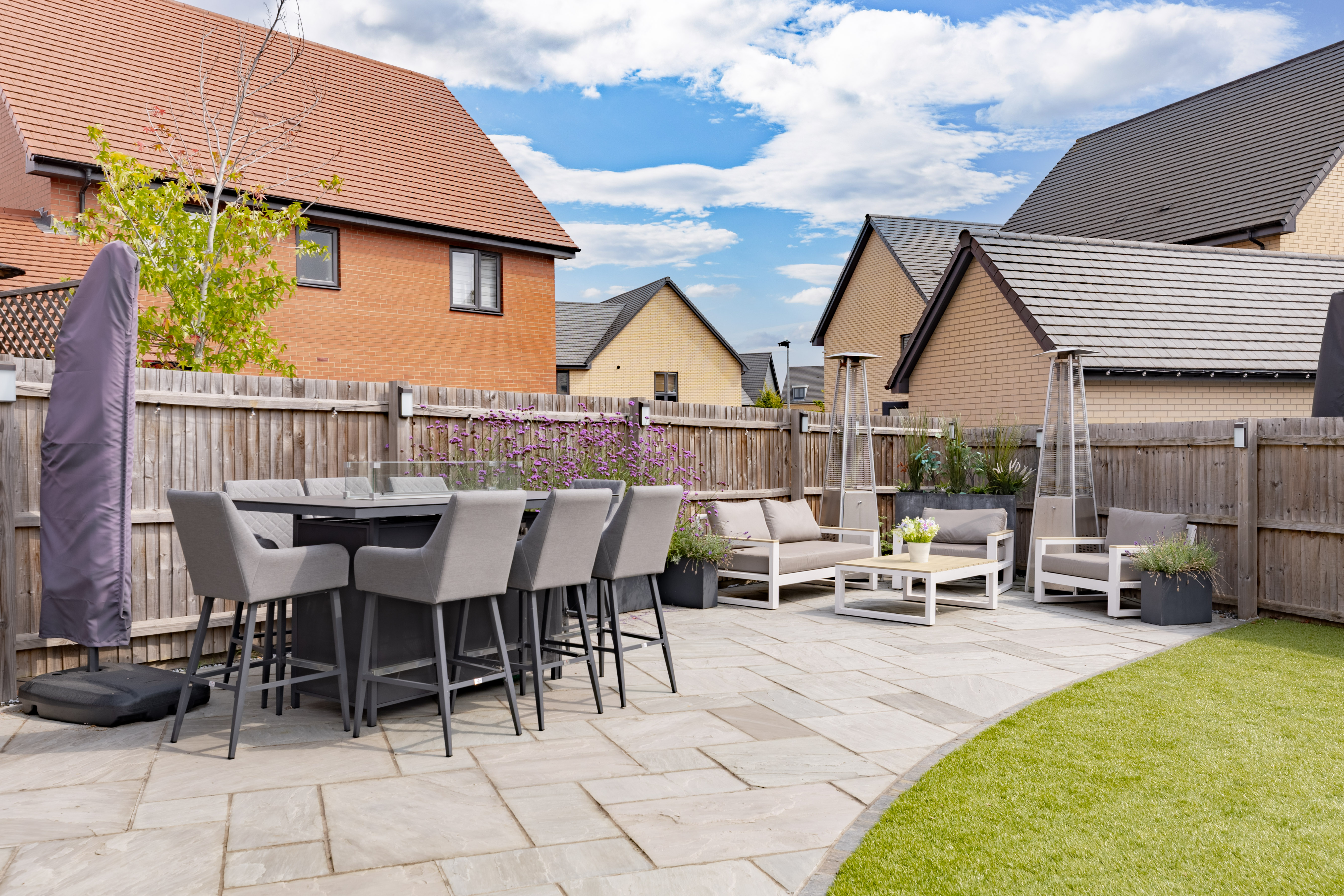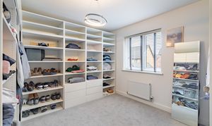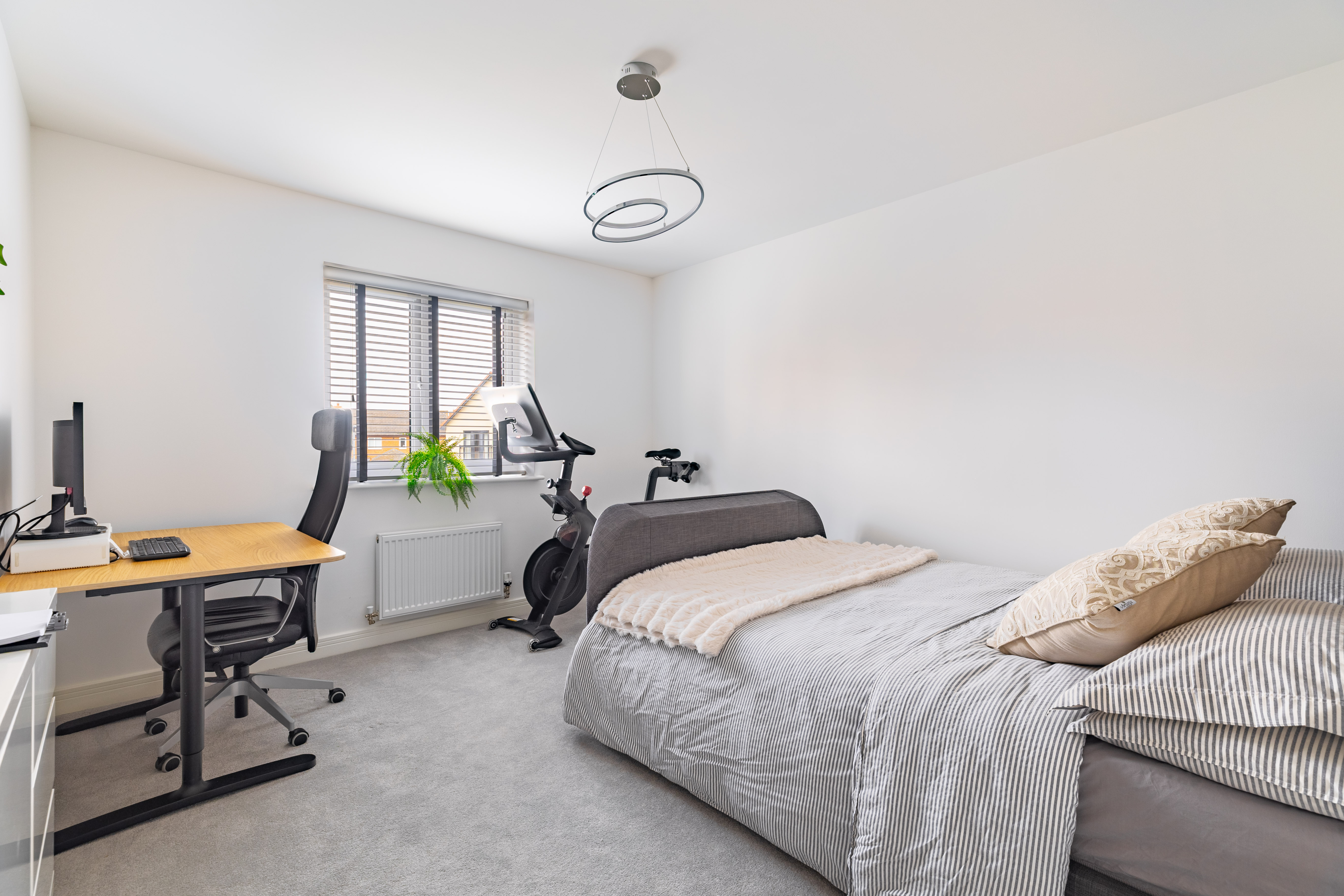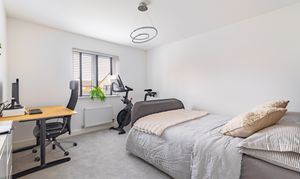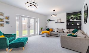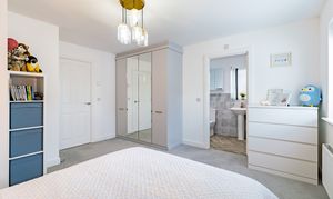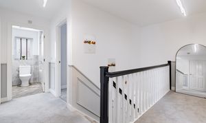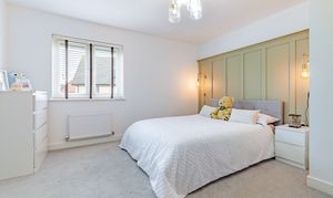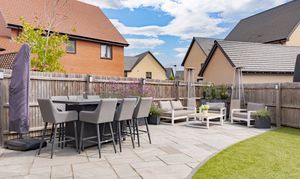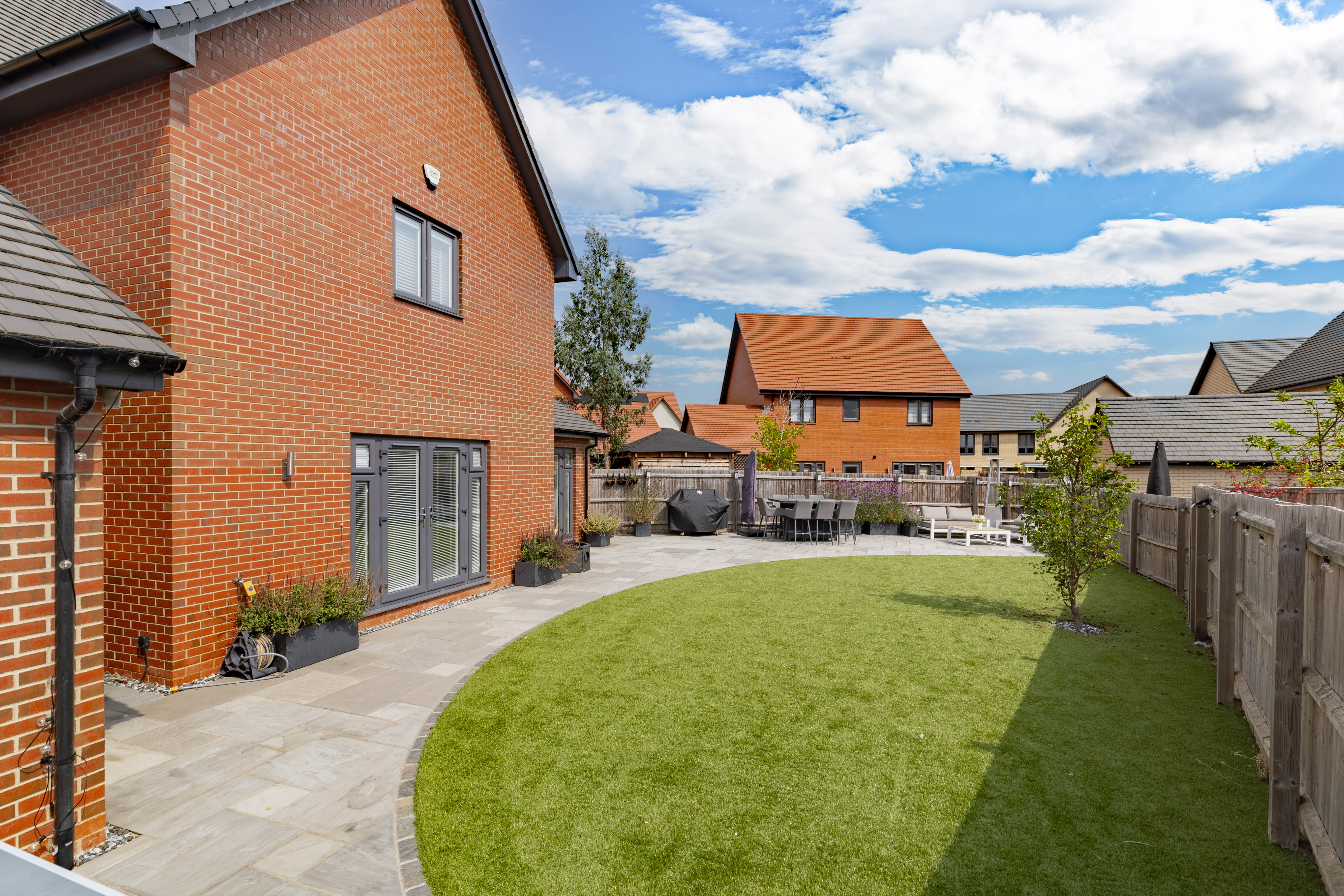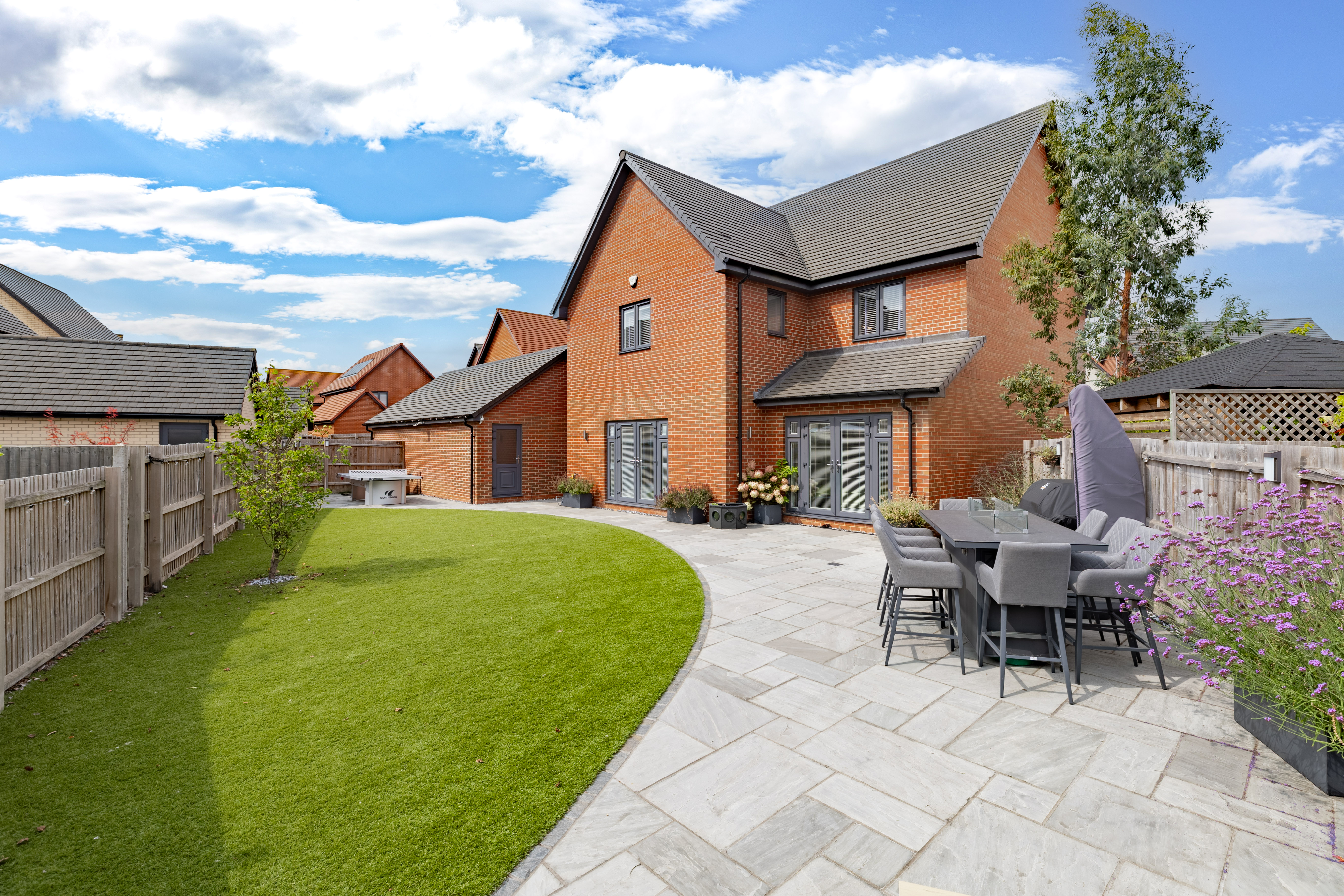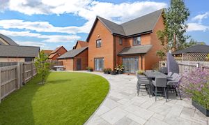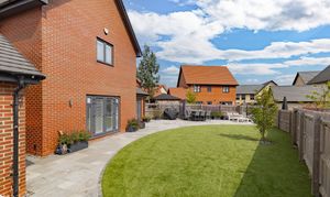 The house is set on a superb plot, with a four-car driveway and a double garage to the side providing plenty of off-road parking. To the rear is a southeast-facing garden. This is an especially good size for a newer home, with loads of space to both run around and relax, and potential for a garden office, studio or gym. It’s landscaped with Indian sandstone and artificial grass for as little maintenance as possible, and enclosed by fencing to keep children and pets safe. You could introduce trellis and trees to the boundaries for added privacy.