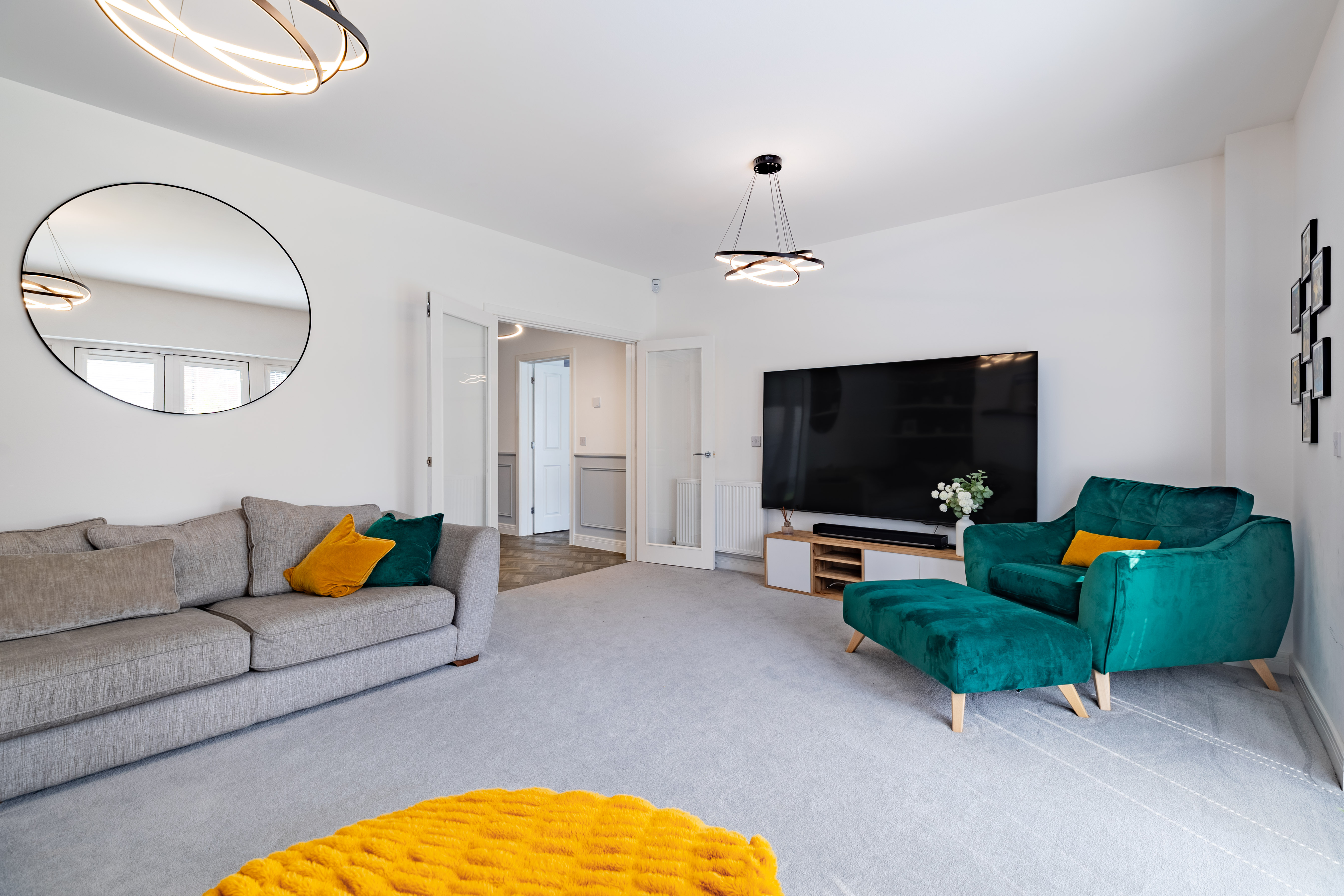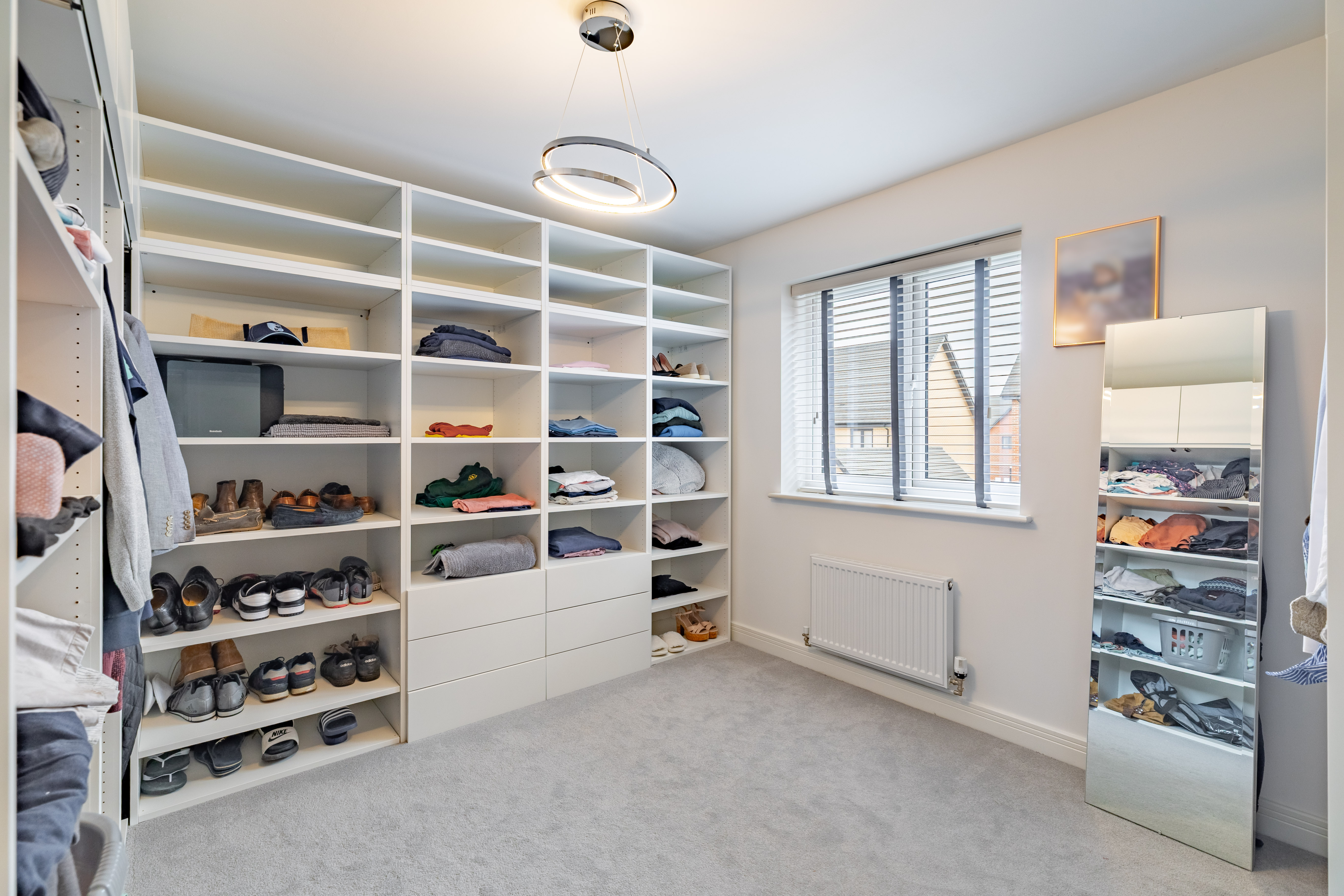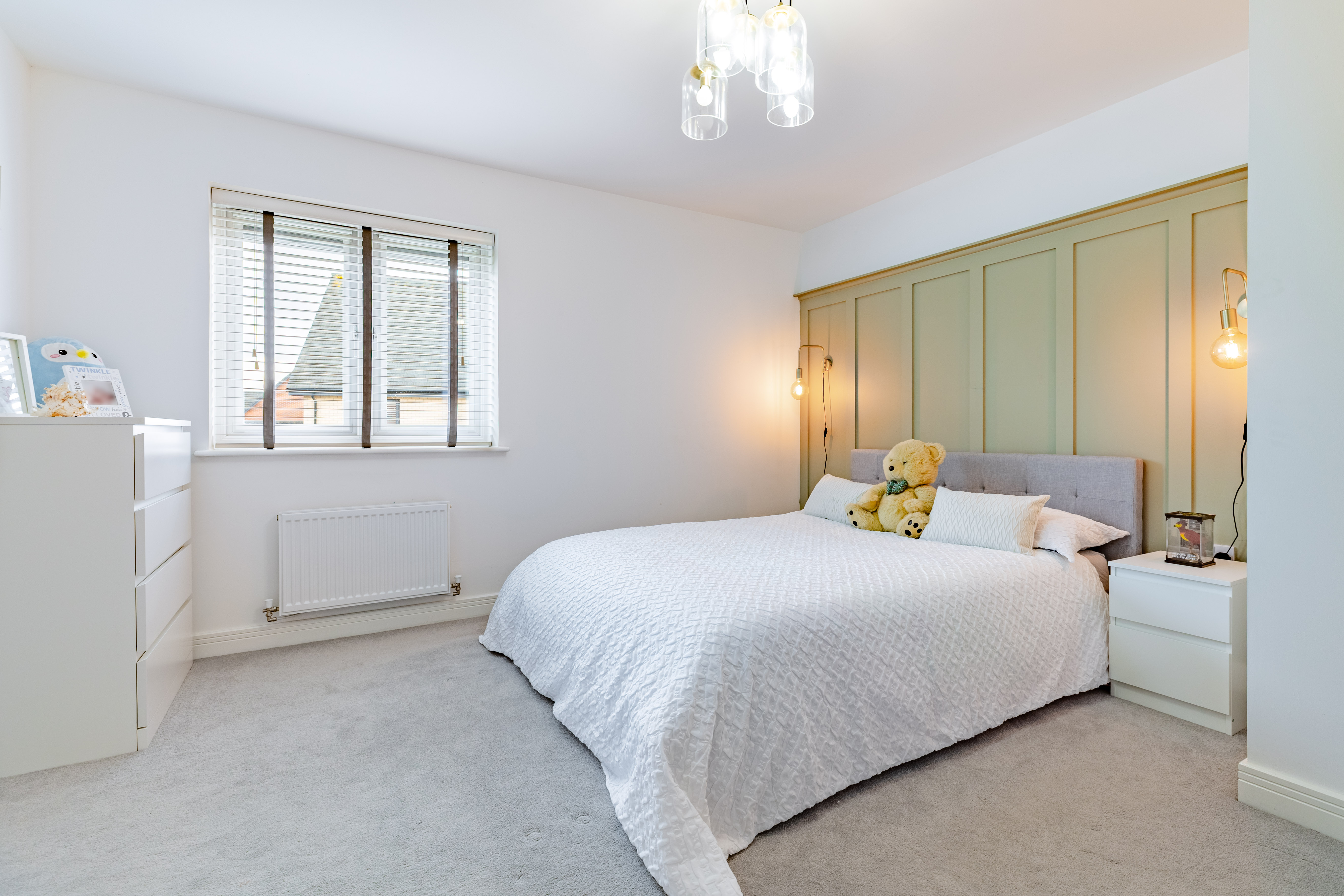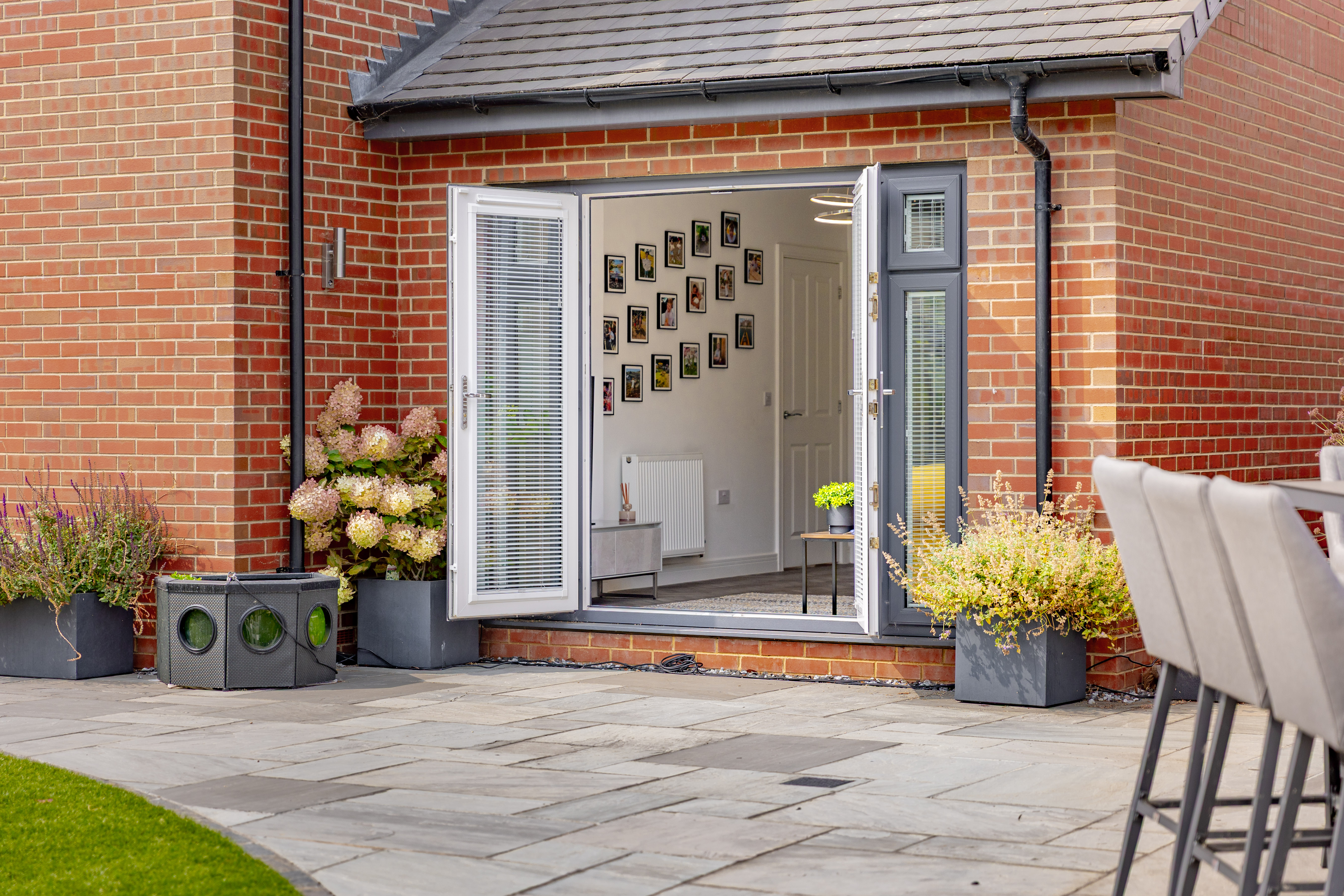 The house is set on a superb plot, with a four-car driveway and a double garage to the side providing plenty of off-road parking. To the rear is a southeast-facing garden. This is an especially good size for a newer home, with loads of space to both run around and relax, and potential for a garden office, studio or gym. It’s landscaped with Indian sandstone and artificial grass for as little maintenance as possible, and enclosed by fencing to keep children and pets safe. You could introduce trellis and trees to the boundaries for added privacy.