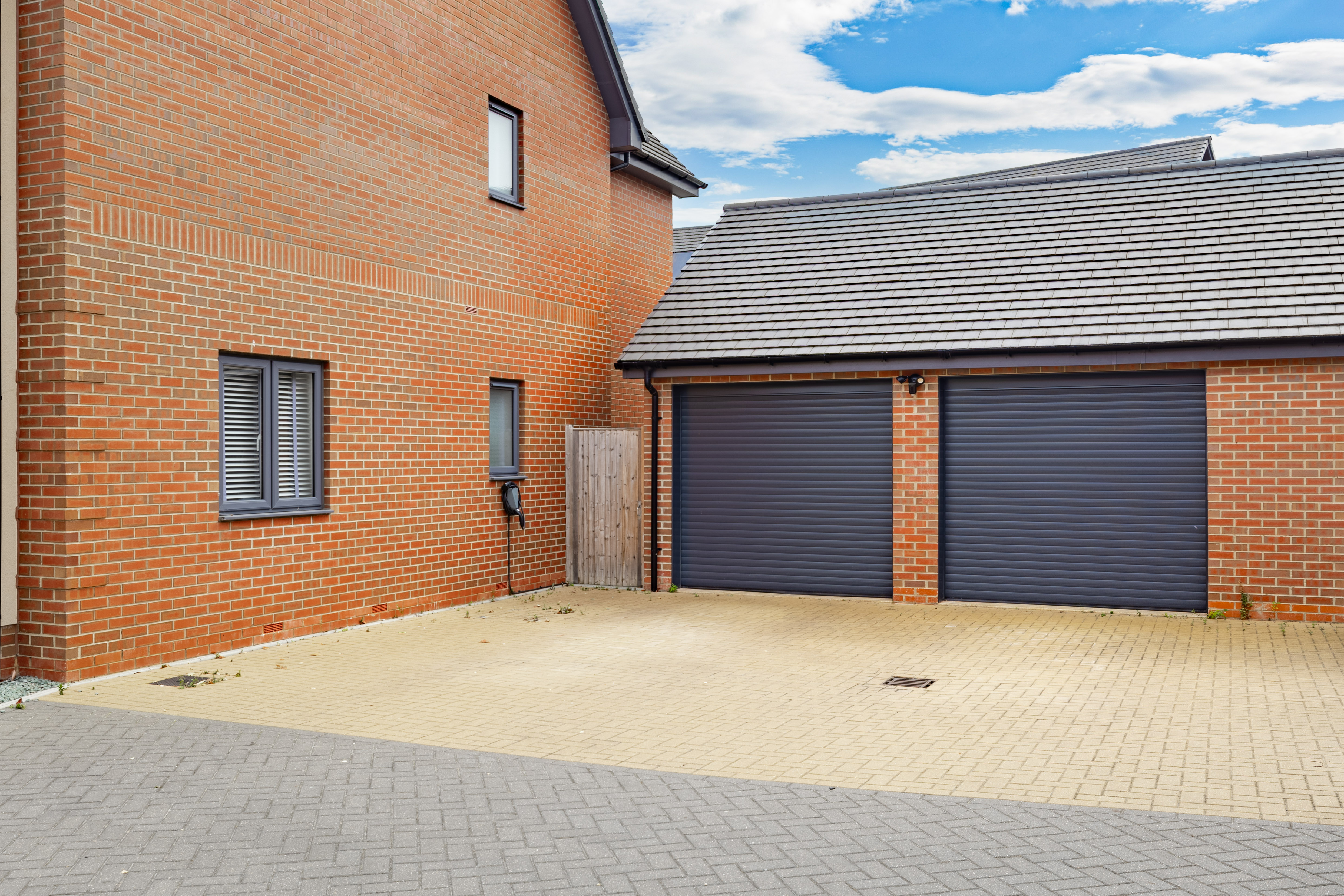 - Four-car driveway, double garage, landscaped garden