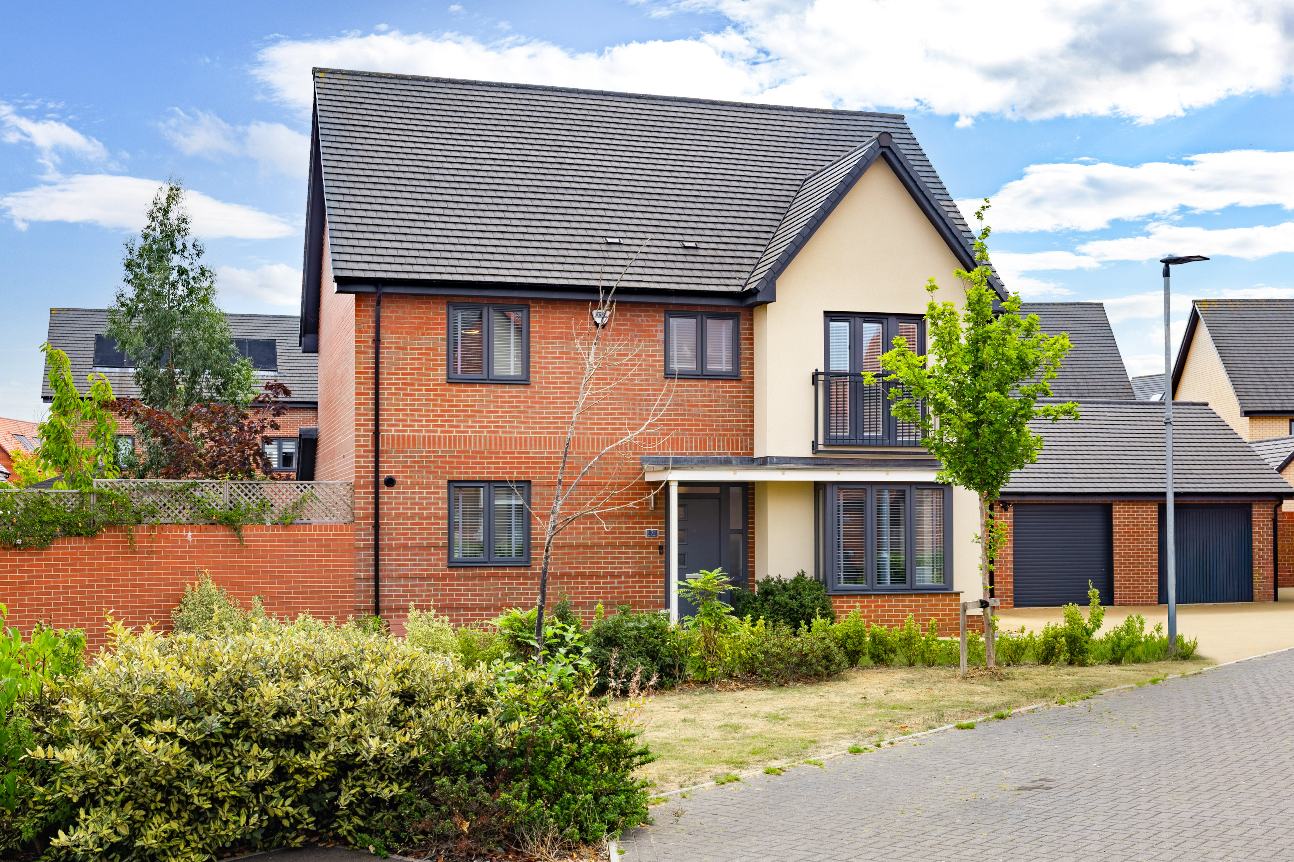 Being only four years old, the property showcases every element you’d expect in a newer home, from open-plan living, to conveniences such as a utility room and an en suite. The red brick contrasts with the anthracite windows, there’s rendering to the façade too, and inside has fresh interiors and contemporary features. It’s readymade yet neutral enough to make your mark.