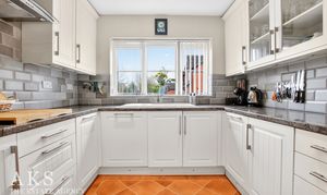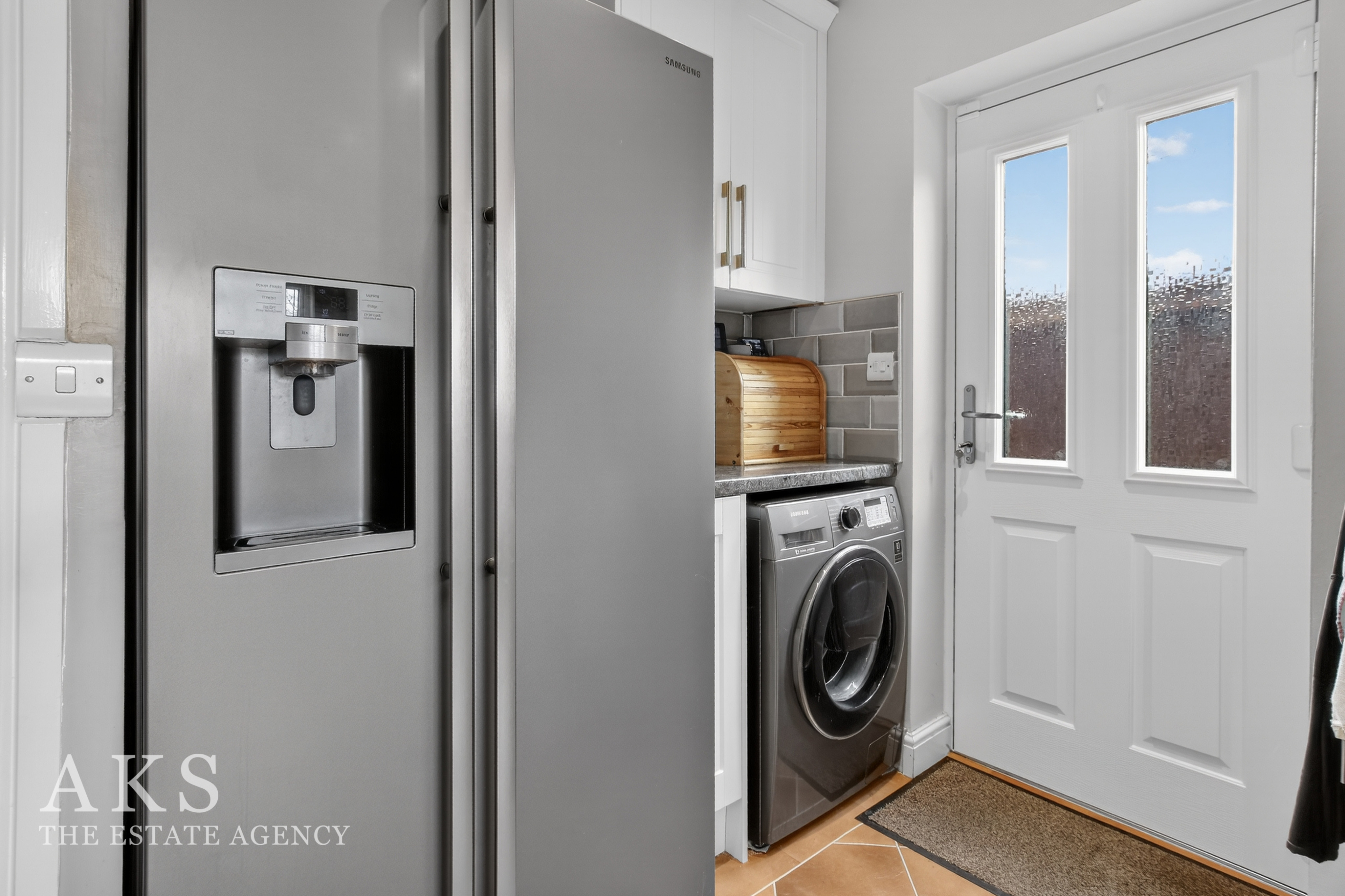 At the heart of the property is a gorgeous kitchen, thoughtfully laid out and tastefully decorated, with space for a breakfast table perfect for slow mornings and everyday family life. It flows naturally into an open utility area, offering both practicality and easy access to the side of the home and down into the garden.