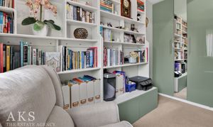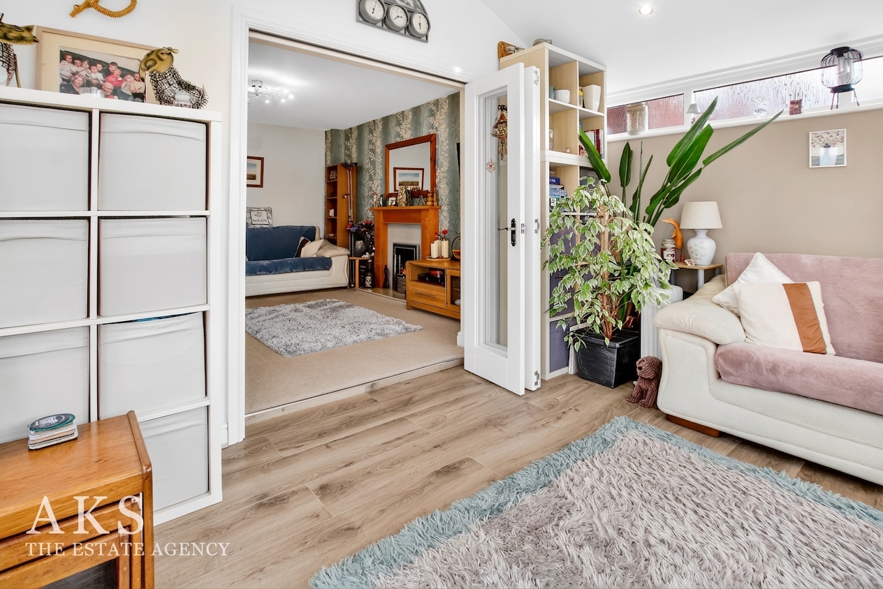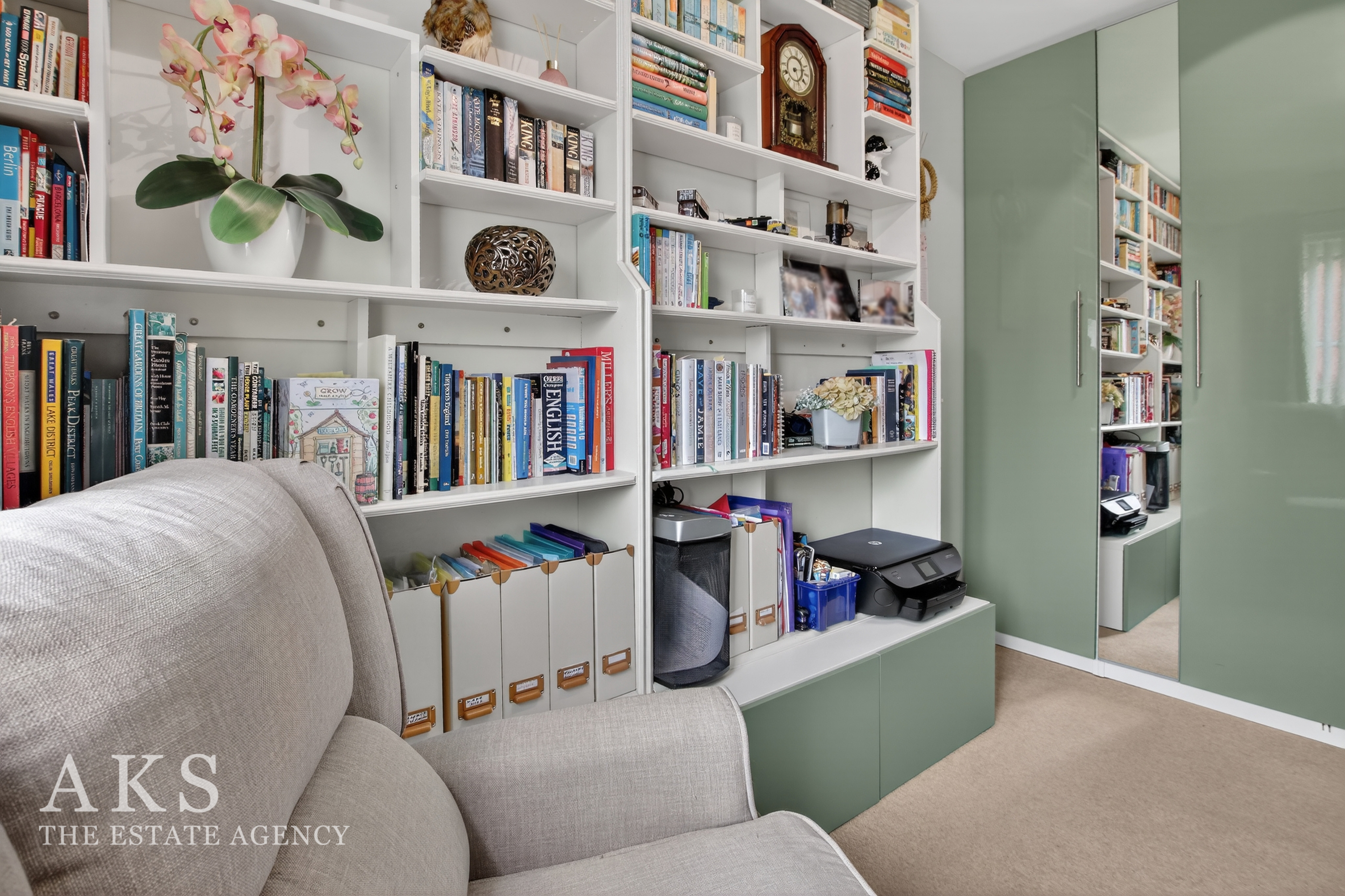 To the rear, a lovely dining room provides the ideal setting for family meals and entertaining, with French doors opening out to the garden and filling the space with natural light. At the front of the property, a versatile and generously sized room offers flexibility to suit your lifestyle whether that’s a cosy snug, a peaceful home office or a playroom.