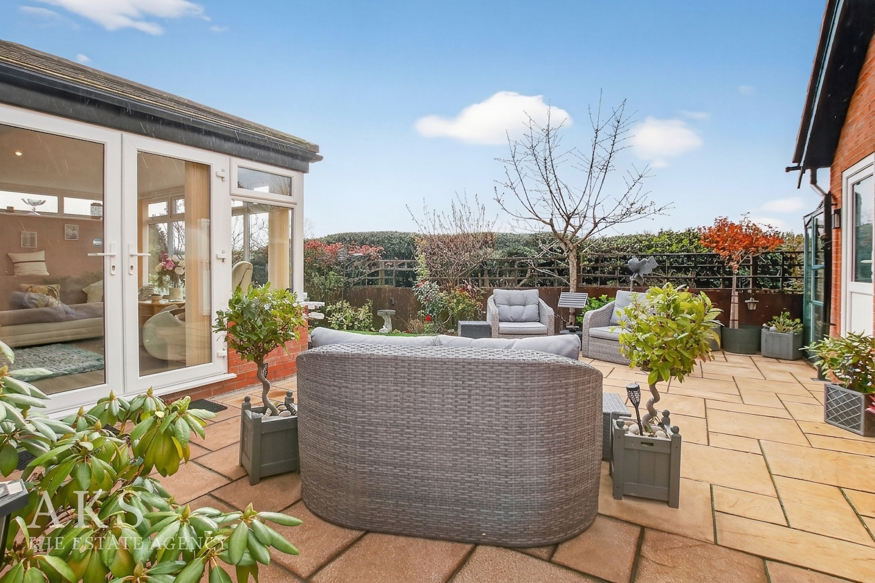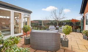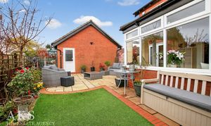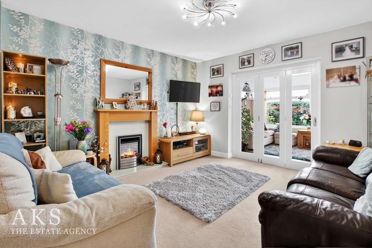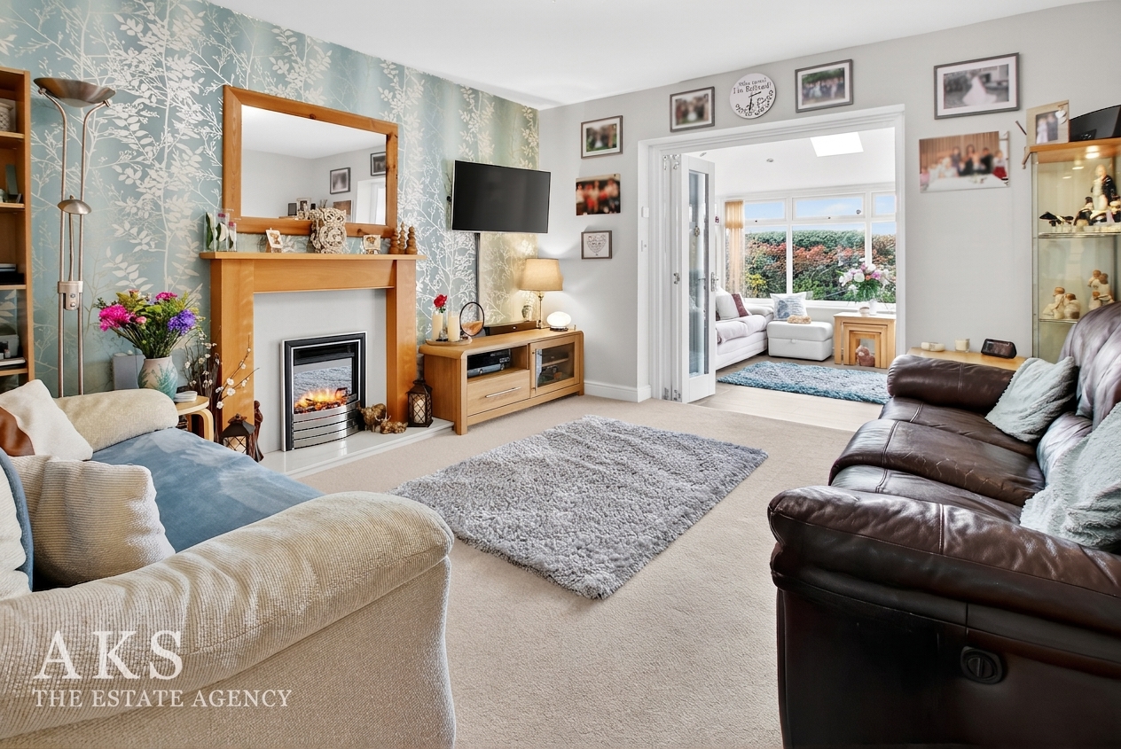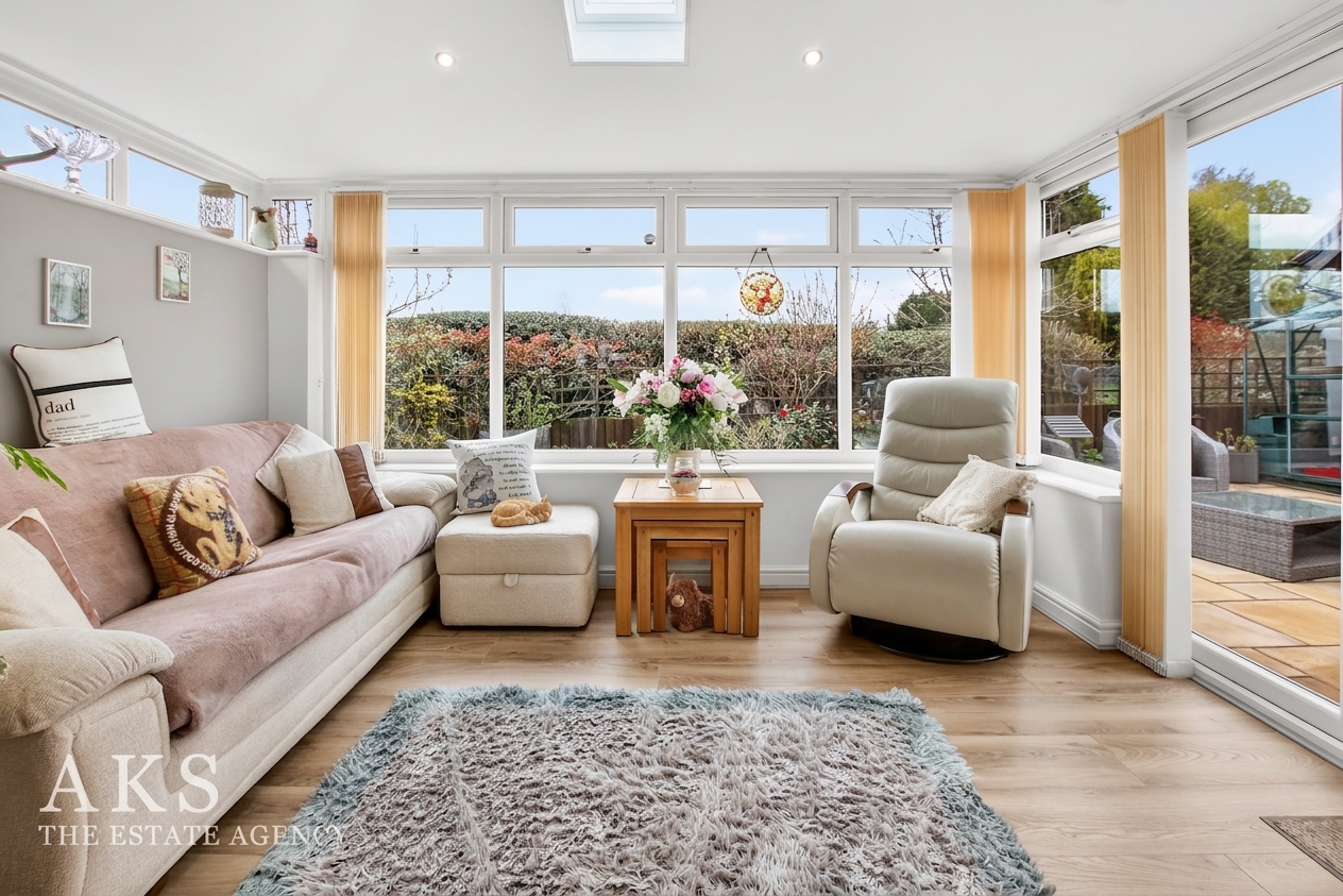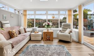 The living room is a wonderfully inviting space, centred around a charming fireplace, perfect for relaxing evenings. Bi-fold doors lead through to a beautifully finished conservatory with a solid roof, creating a comfortable space to enjoy all year round, with doors opening out into the garden.