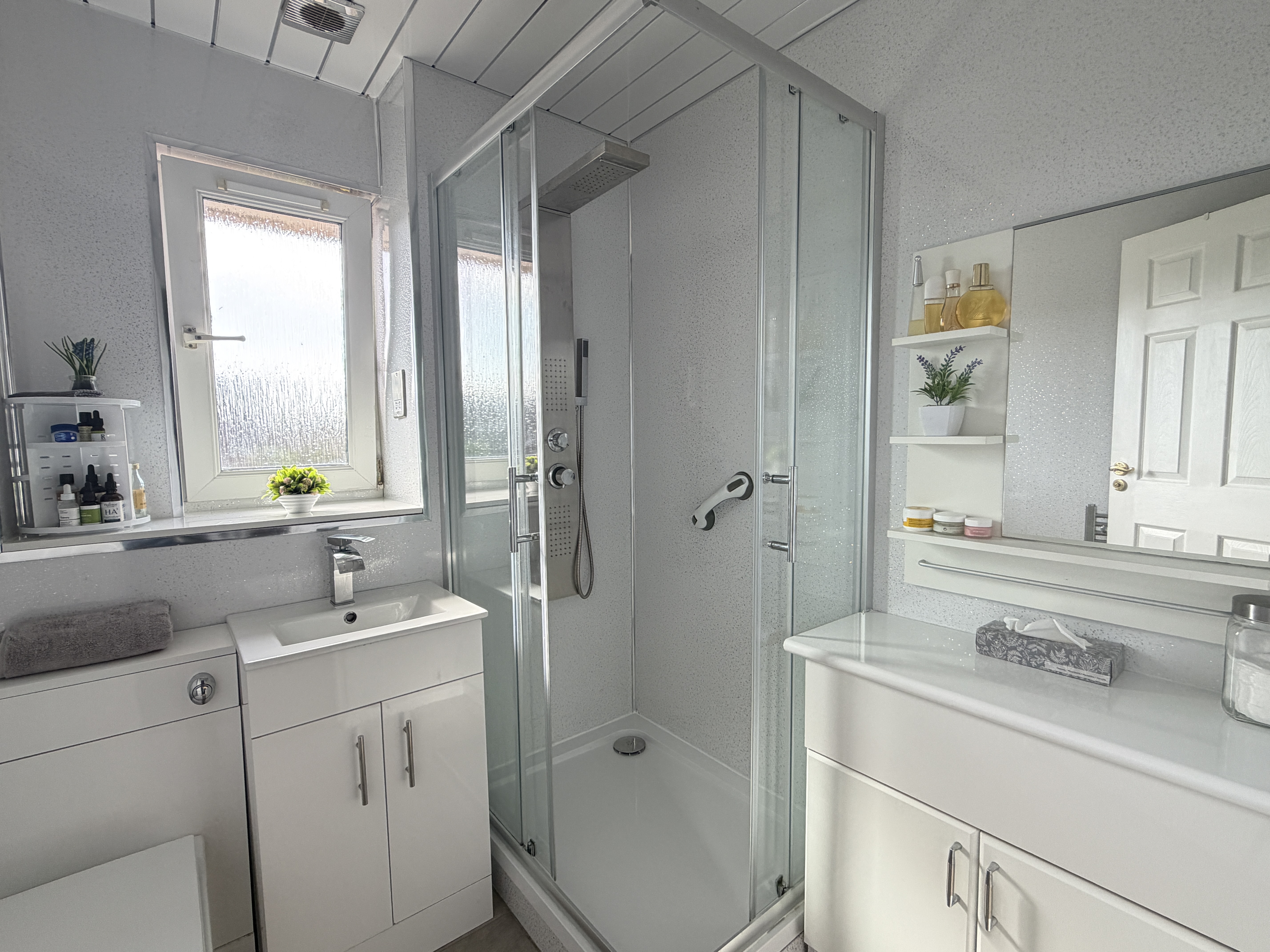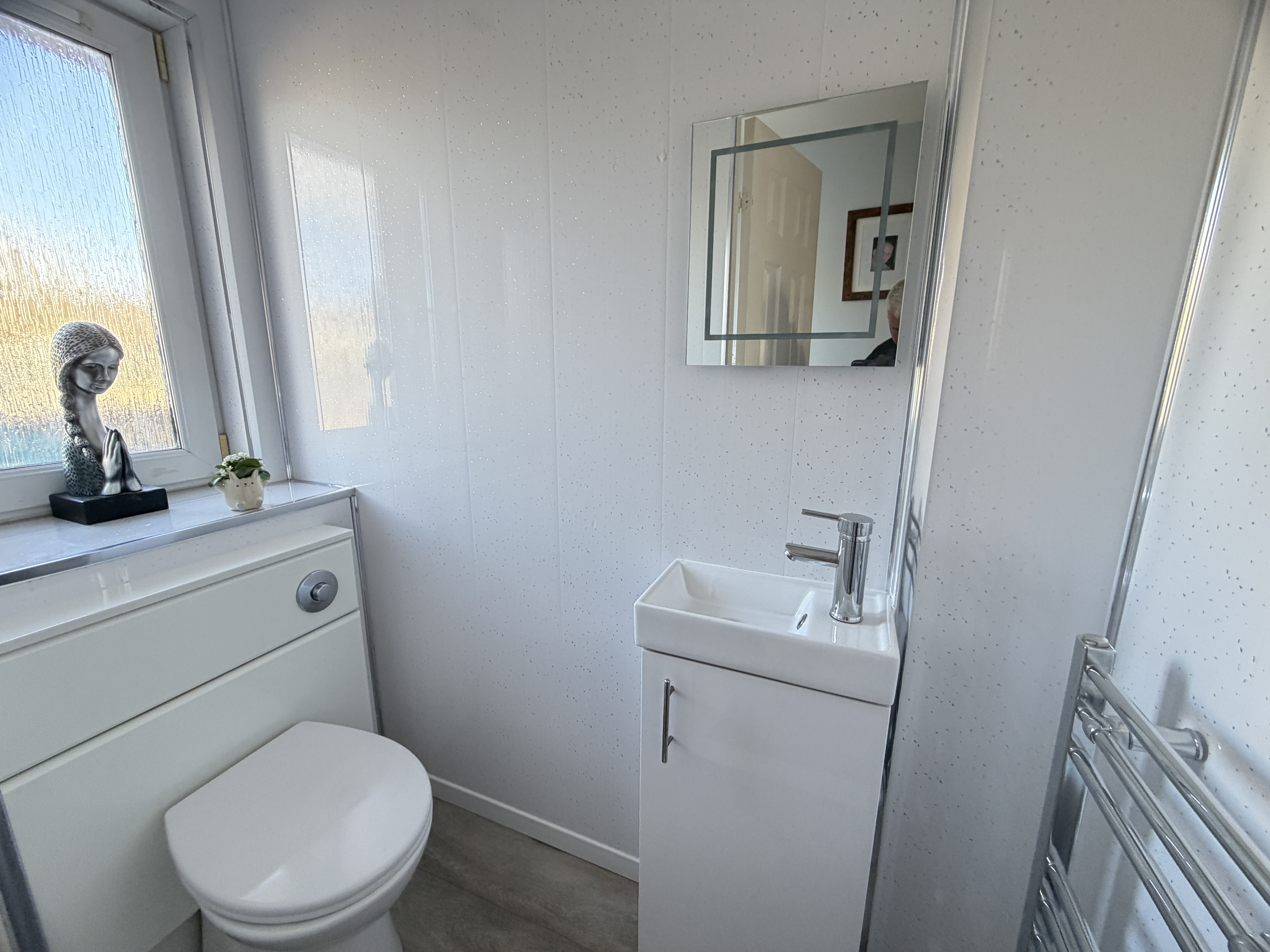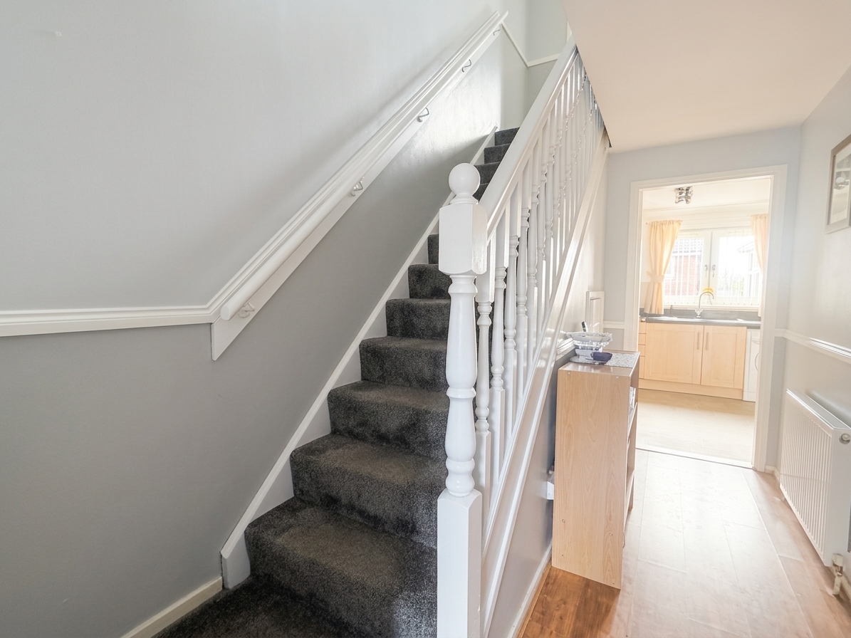 A convenient downstairs WC adds to the practicality of the ground floor layout. Upstairs, there are three well sized bedrooms, each offering plenty of natural light through double glazed windows (ensuring a bright and airy atmosphere throughout the home), as well as a family bathroom fitted with quality fixtures and fittings including walk in shower.