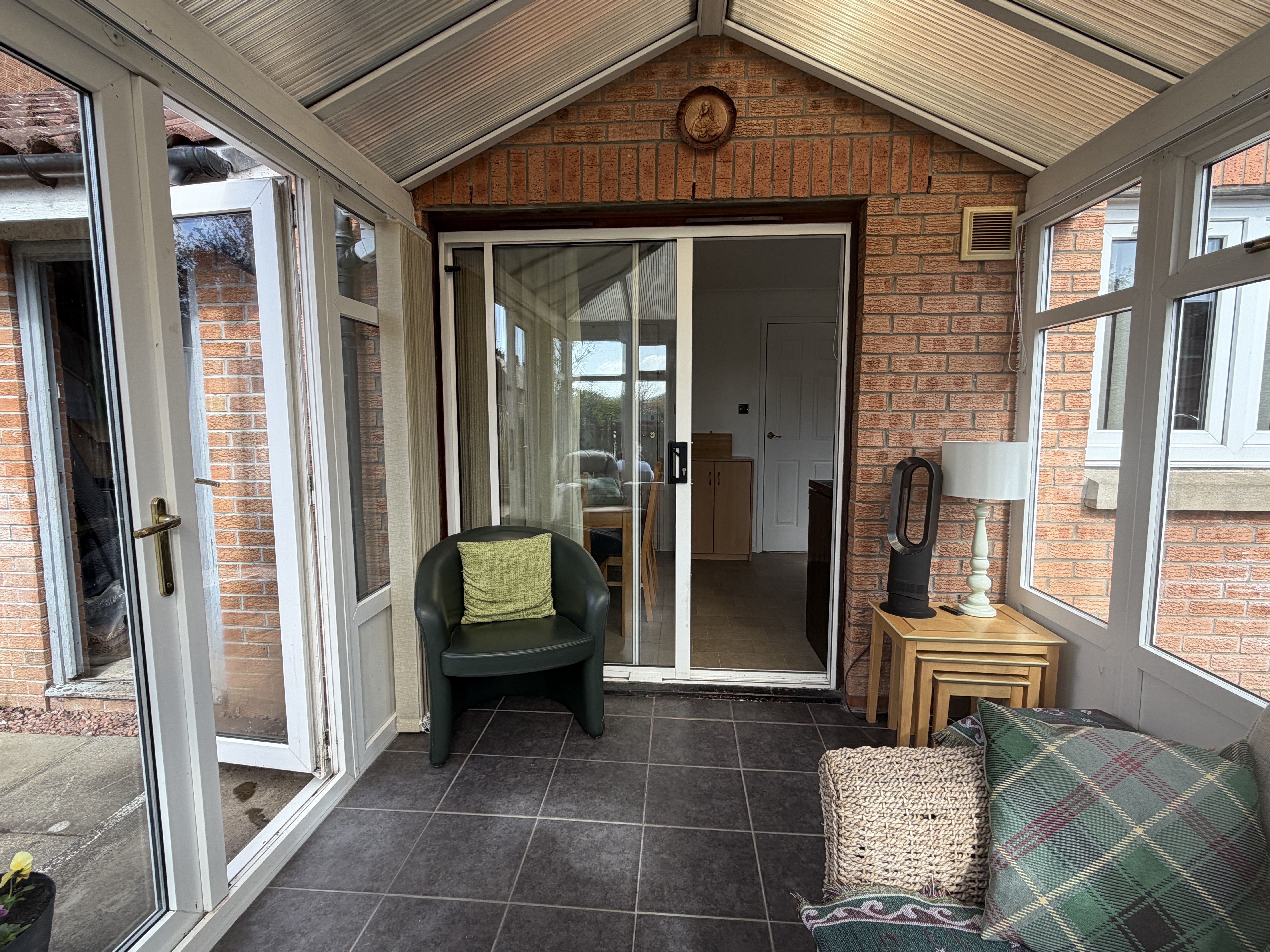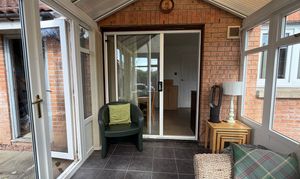 The spacious, modern fitted kitchen is equipped with a range of contemporary units and integrated appliances, providing ample workspace and storage for culinary enthusiasts whilst having space for a large dining table. Additional space is provided by the conservatory which is accessed from the kitchen area.